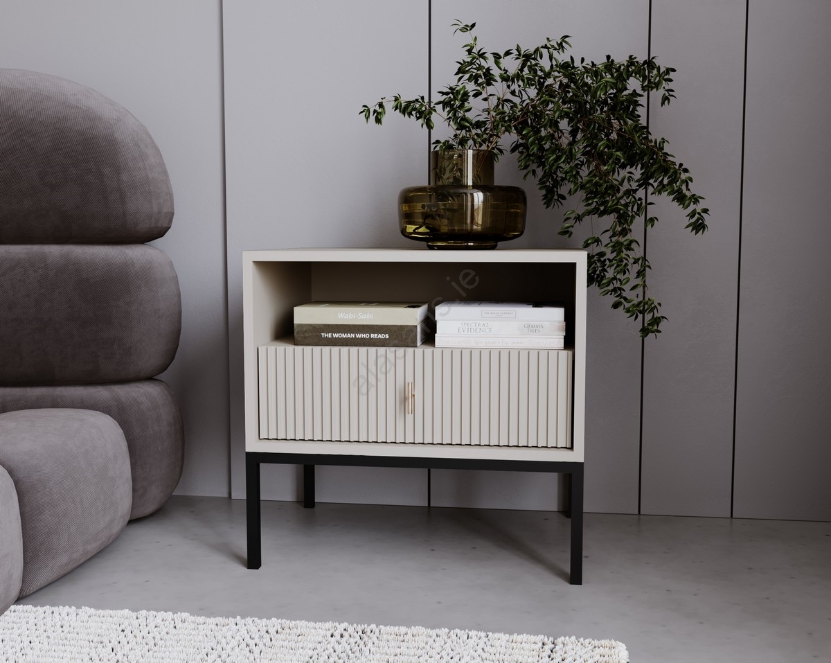 • Features a drawer adorned with vertical ribbing for a refined visual effect.