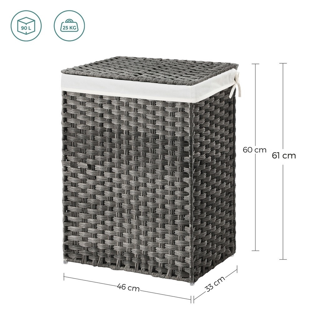• The laundry basket offers a large capacity - 90 liters for your clothes, towels and bedding.