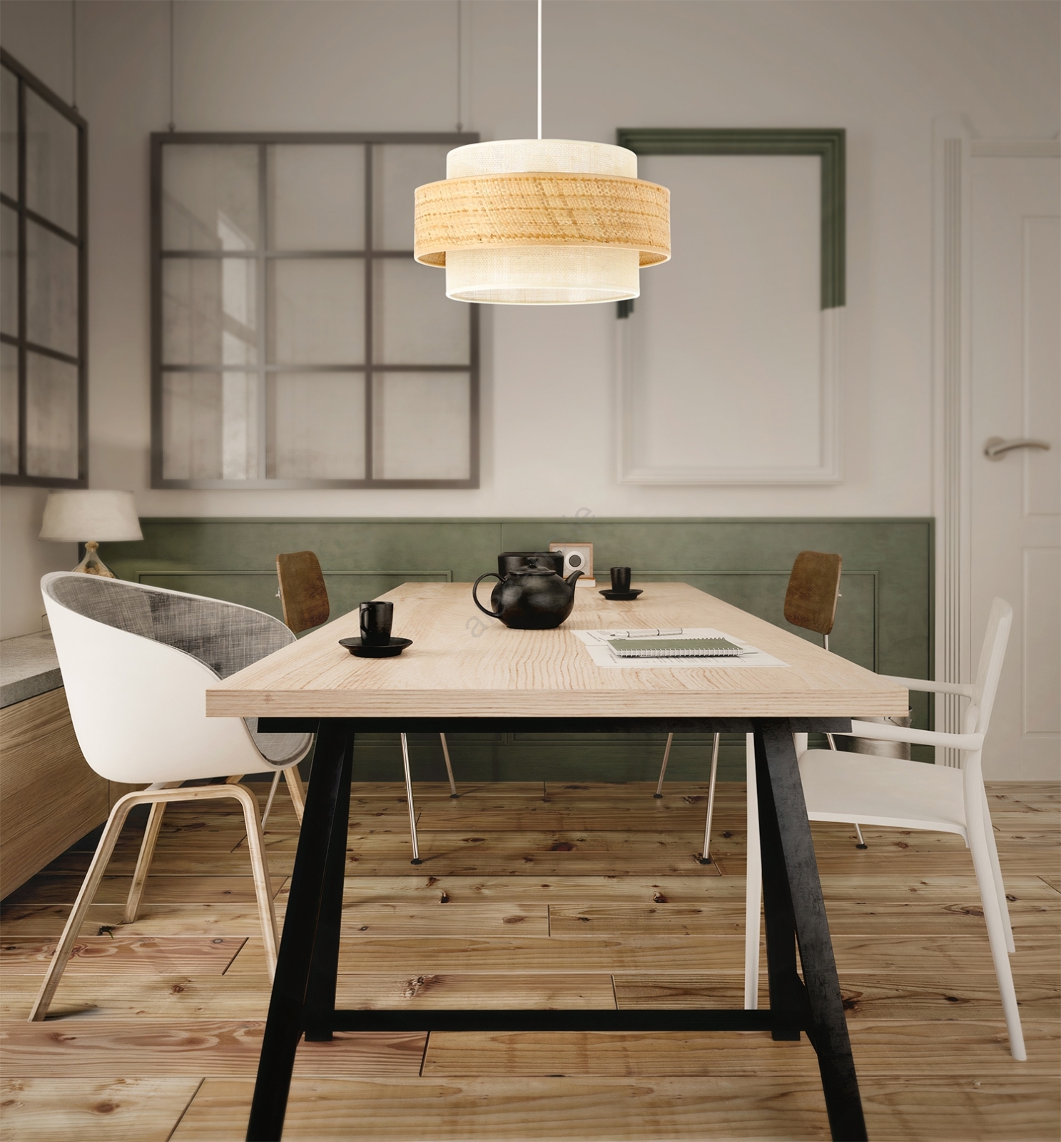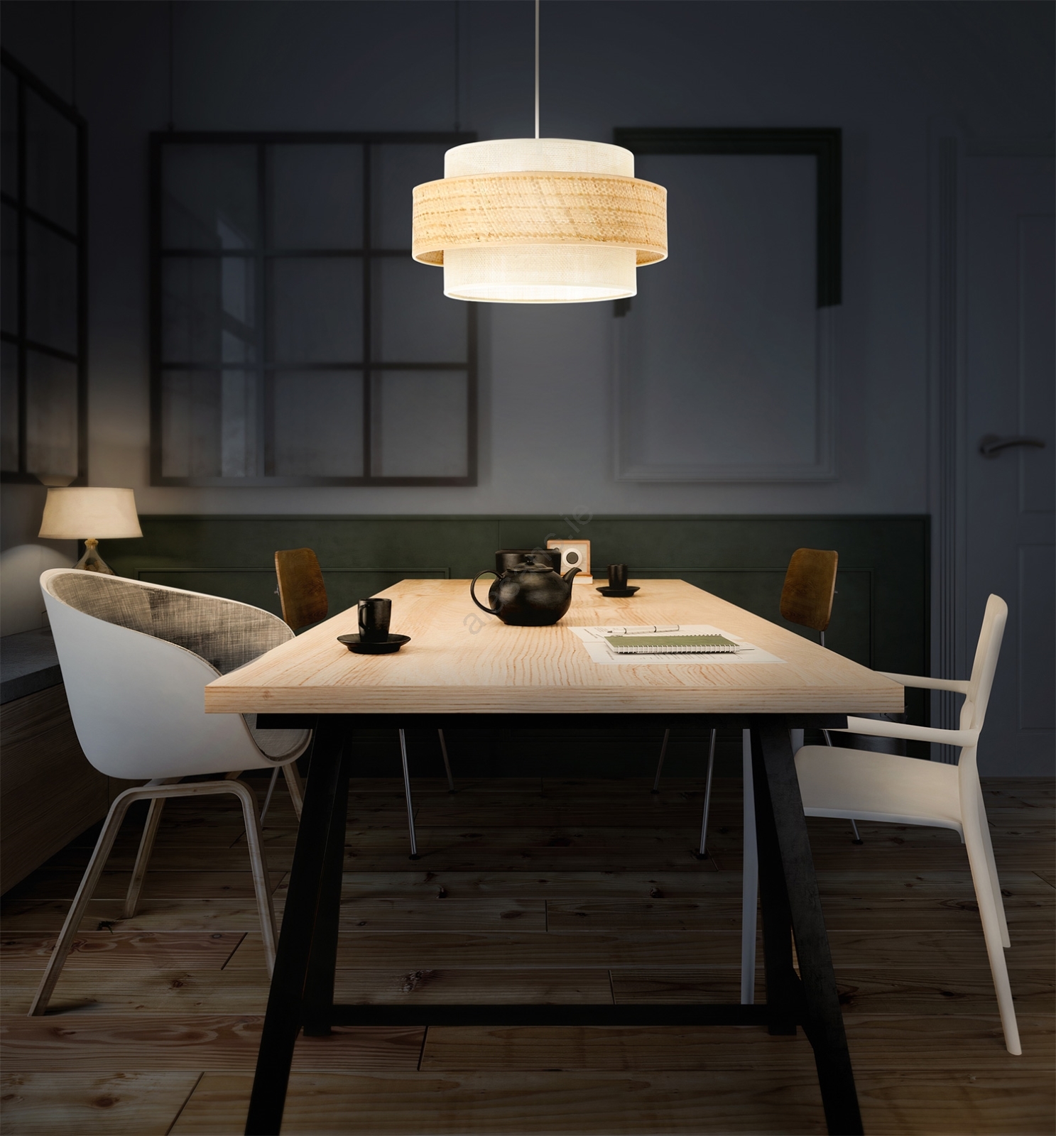 BOHO pendant light on cord 1xE27/60W/230V Ø 40 cm jute/cream characterizes nice and functional design.  A bulb with E27 cap is suitable for the light. Here, you can buy other bulbs at advantageous prices. You will have an interesting addtiion to your home.