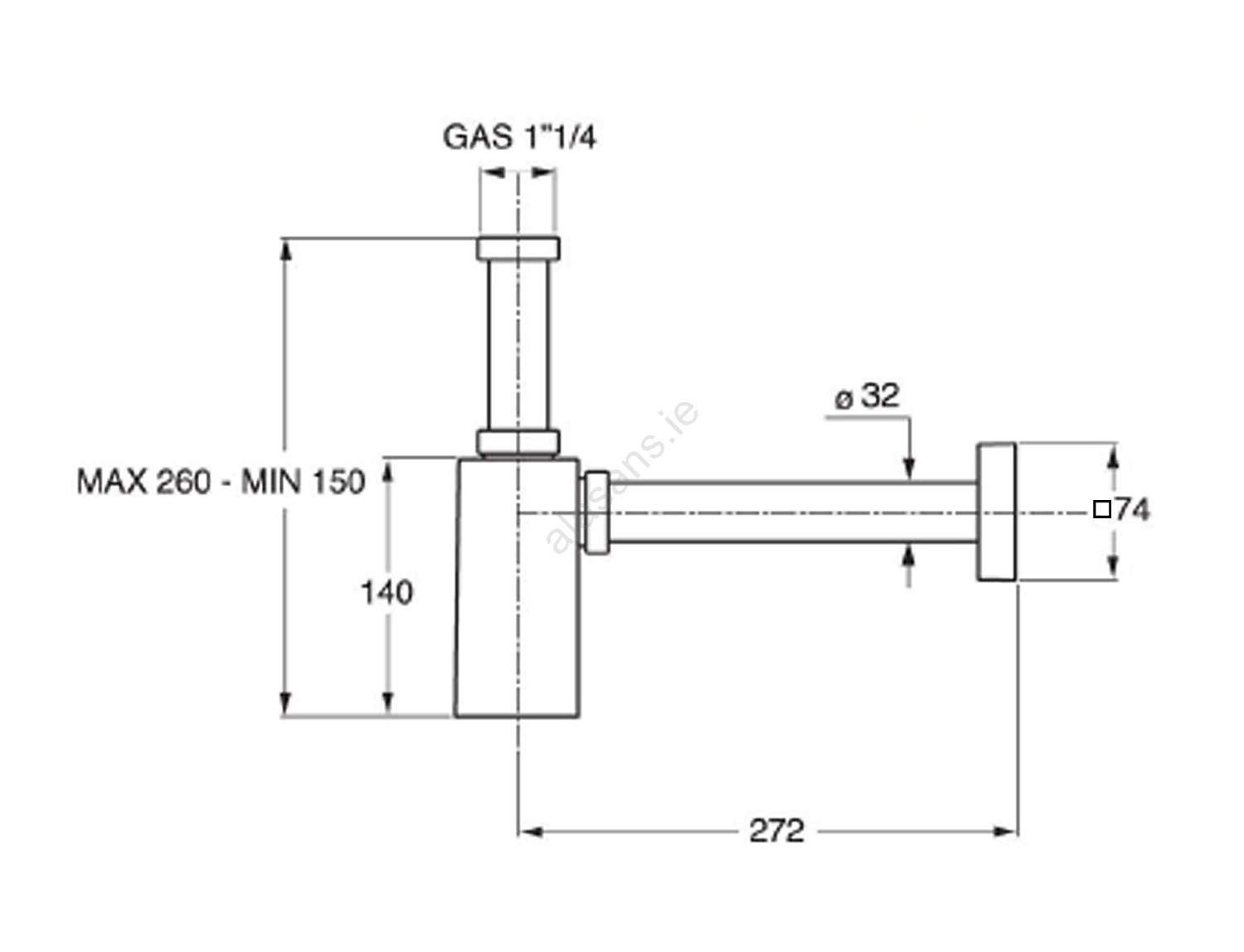 • The drain diameter is 32 mm and the thread size is 5/4".