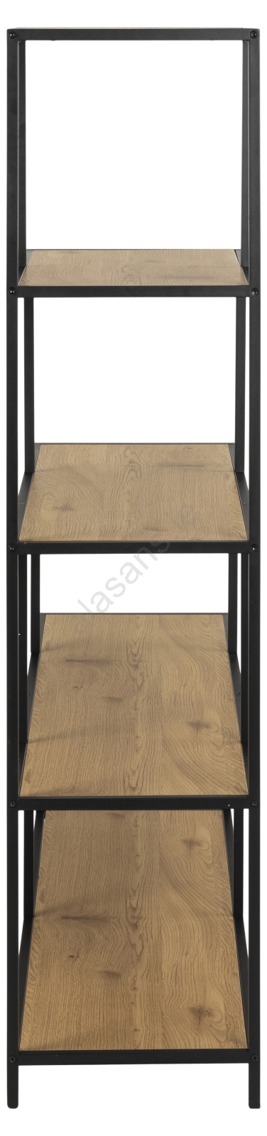 • This piece has a distinctiveness that complements many decor styles with its striking oak appearance and black metal base.