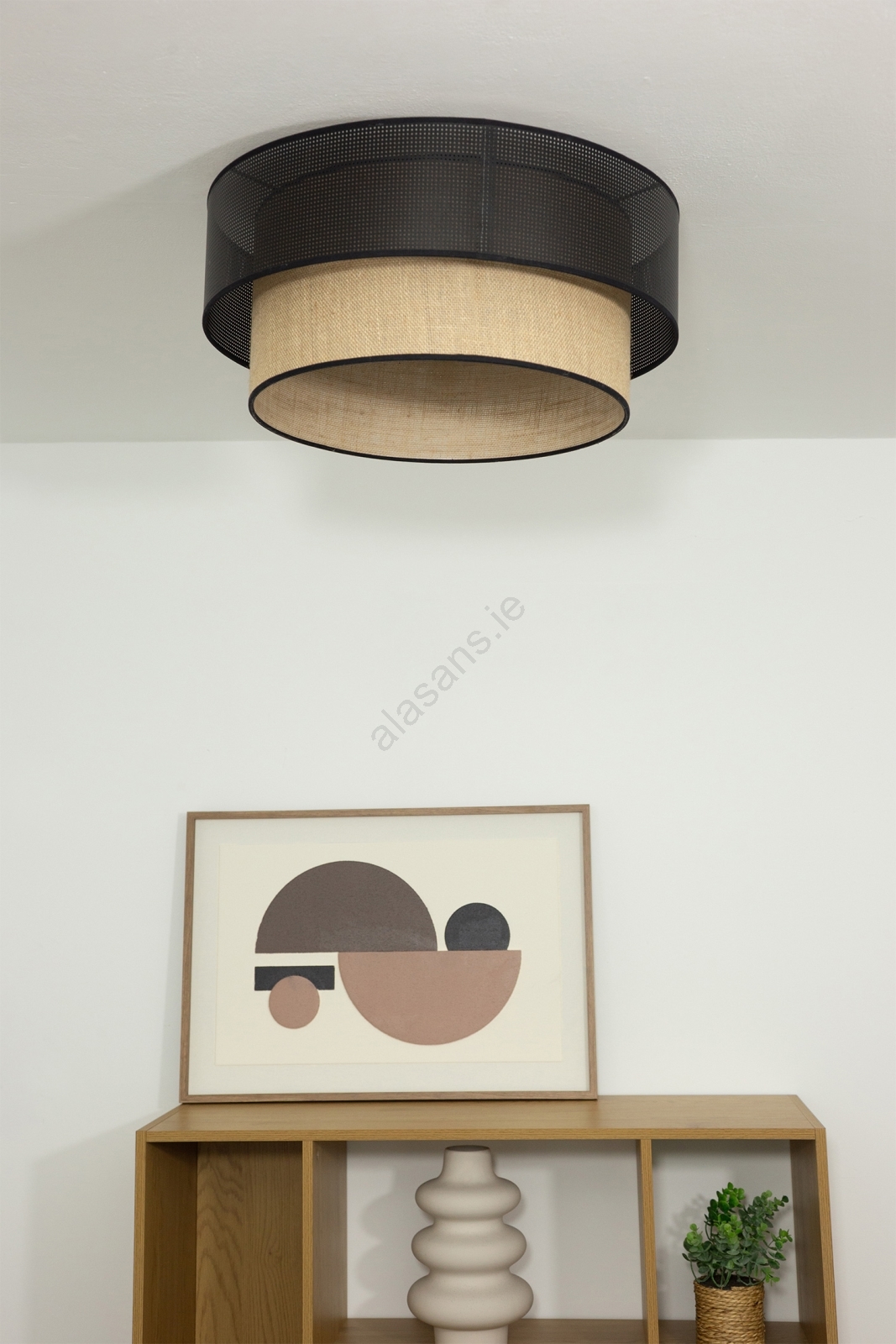 BORHO Ceiling Lamp 1x E27, 60W, 230V, Ø 50 cm, Black/Jute