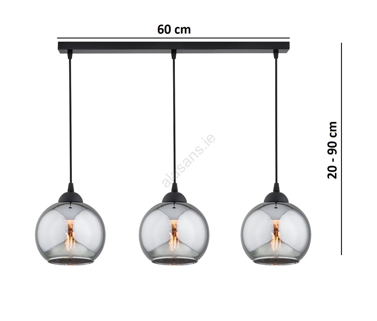 Brilagi - Cable pendant light 3xE27/60W/230V black/smoked grey