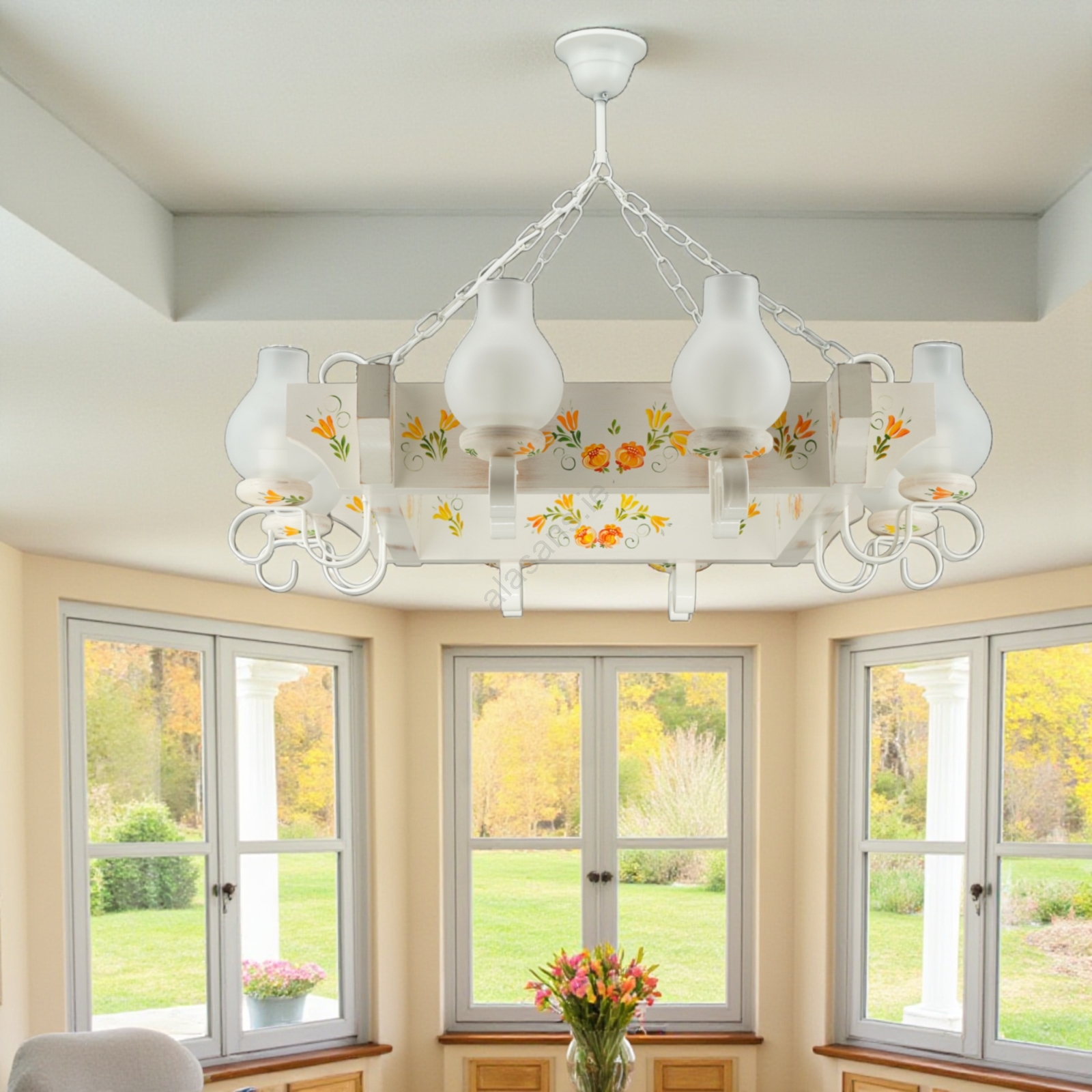 Brilagi - Chain-hung chandelier QUEEN 8xE14/40W/230V beech/cream characterizes nice and functional design.  A bulb with E14 cap is suitable for the light. Here, you can buy other bulbs at advantageous prices. You will have an interesting addtiion to your home.