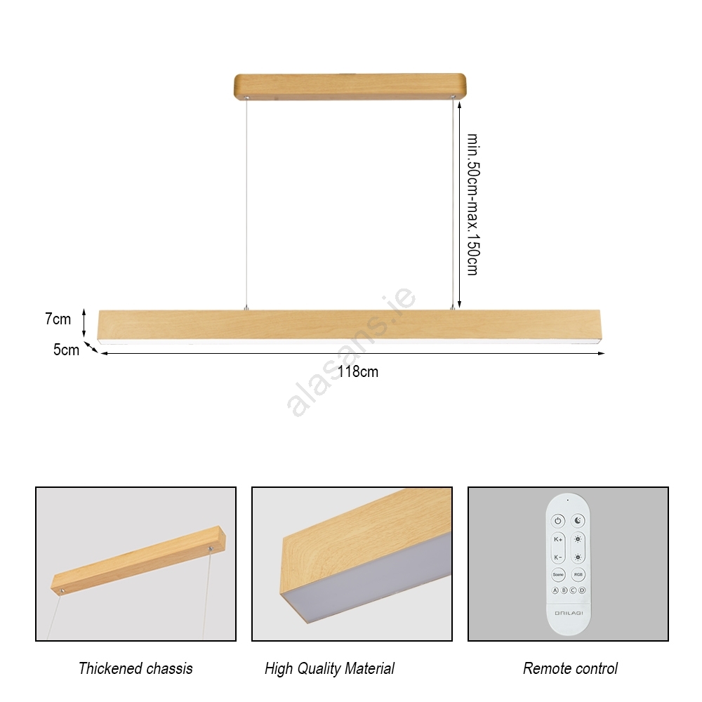 • Brilagi - SLEEKLINE SMART Dimmable LED Chandelier, 40W/230V, Wi‑Fi (Tuya), Oak Finish + Remote Control
