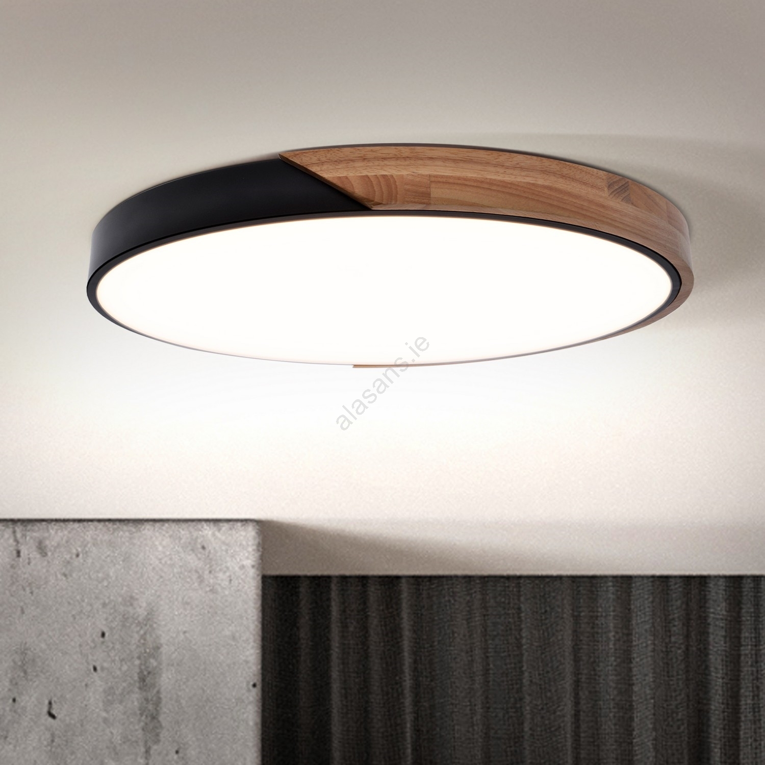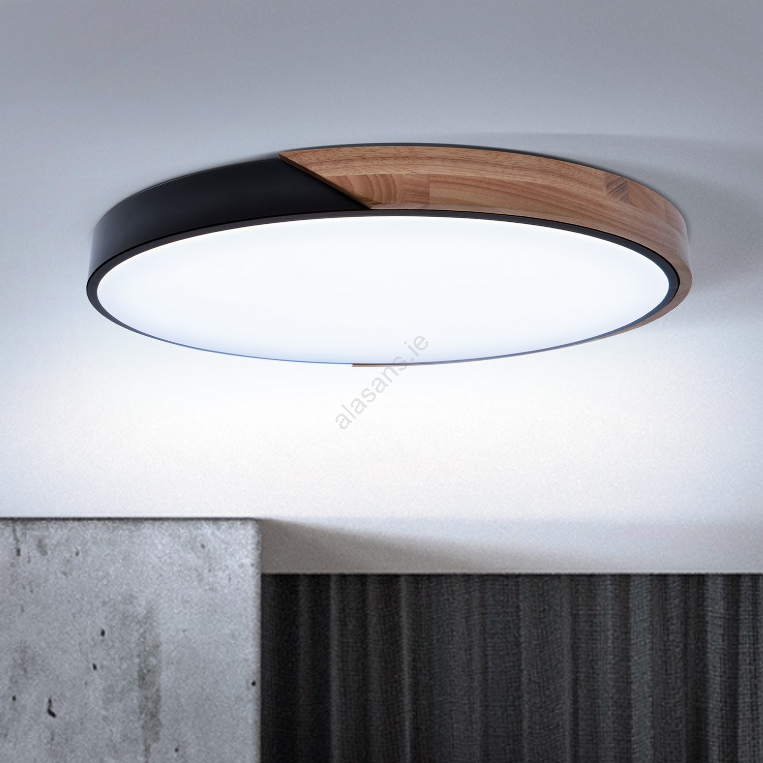 Brilagi - Dimmable PILANA LED Ceiling Light, 60W/230V, oak/black, Ø 58.5 cm + remote control