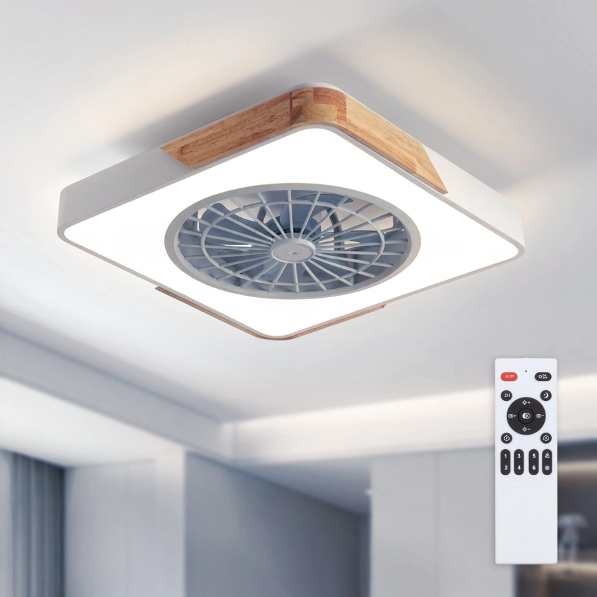 • Brilagi - Dimmable LED ceiling light with fan LED/38W/230V 3000-6500K 50x50 cm white/oak + remote control