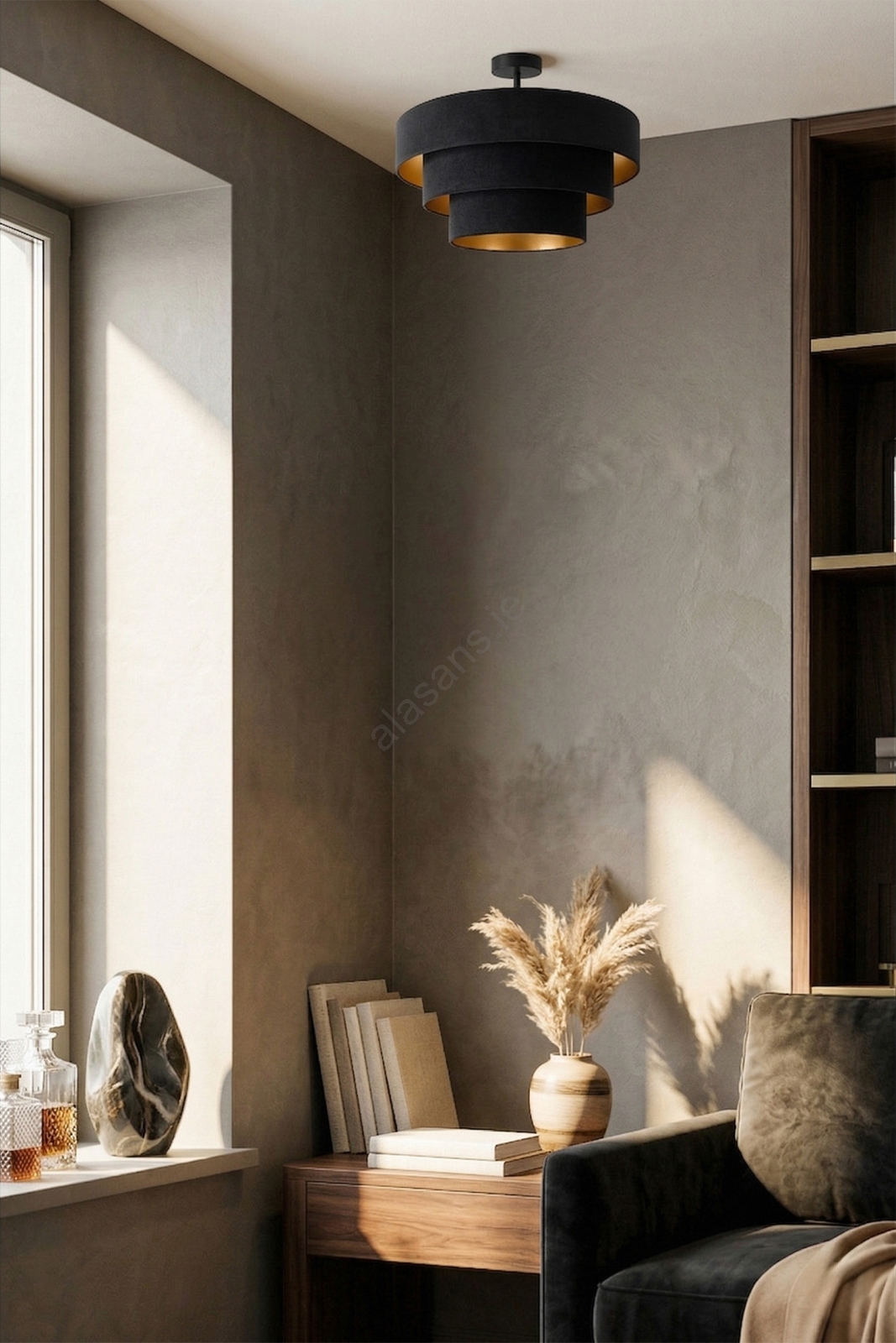 Brilagi - Flush-mount ceiling light LUNETA 1xE27/60W/230V Ø 40 cm black/gold characterizes nice and functional design.  A bulb with E27 cap is suitable for the light. Here, you can buy other bulbs at advantageous prices. You will have an interesting addtiion to your home.