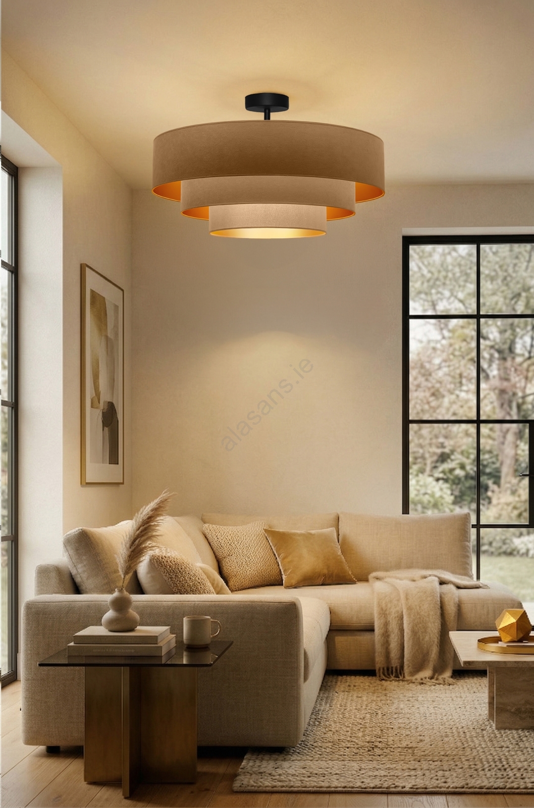 Brilagi - Flush-mount chandelier LUNETA 3xE27/60W/230V Ø 80 cm beige/gold characterizes nice and functional design.  A bulb with E27 cap is suitable for the light. Here, you can buy other bulbs at advantageous prices. You will have an interesting addtiion to your home.