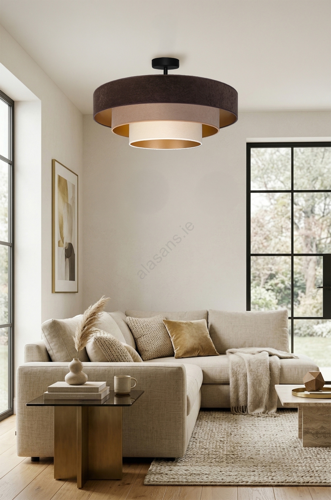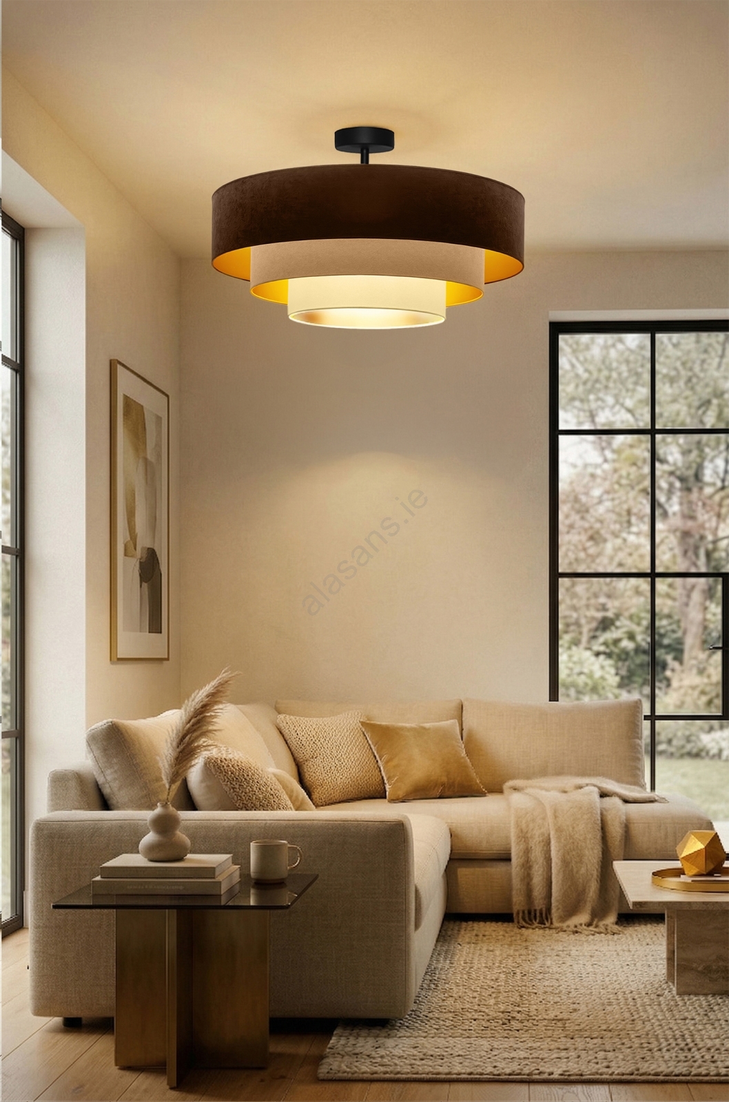 Brilagi - Flush-mount chandelier LUNETA 3xE27/60W/230V Ø 80 cm brown/beige/cream characterizes nice and functional design.  A bulb with E27 cap is suitable for the light. Here, you can buy other bulbs at advantageous prices. You will have an interesting addtiion to your home.