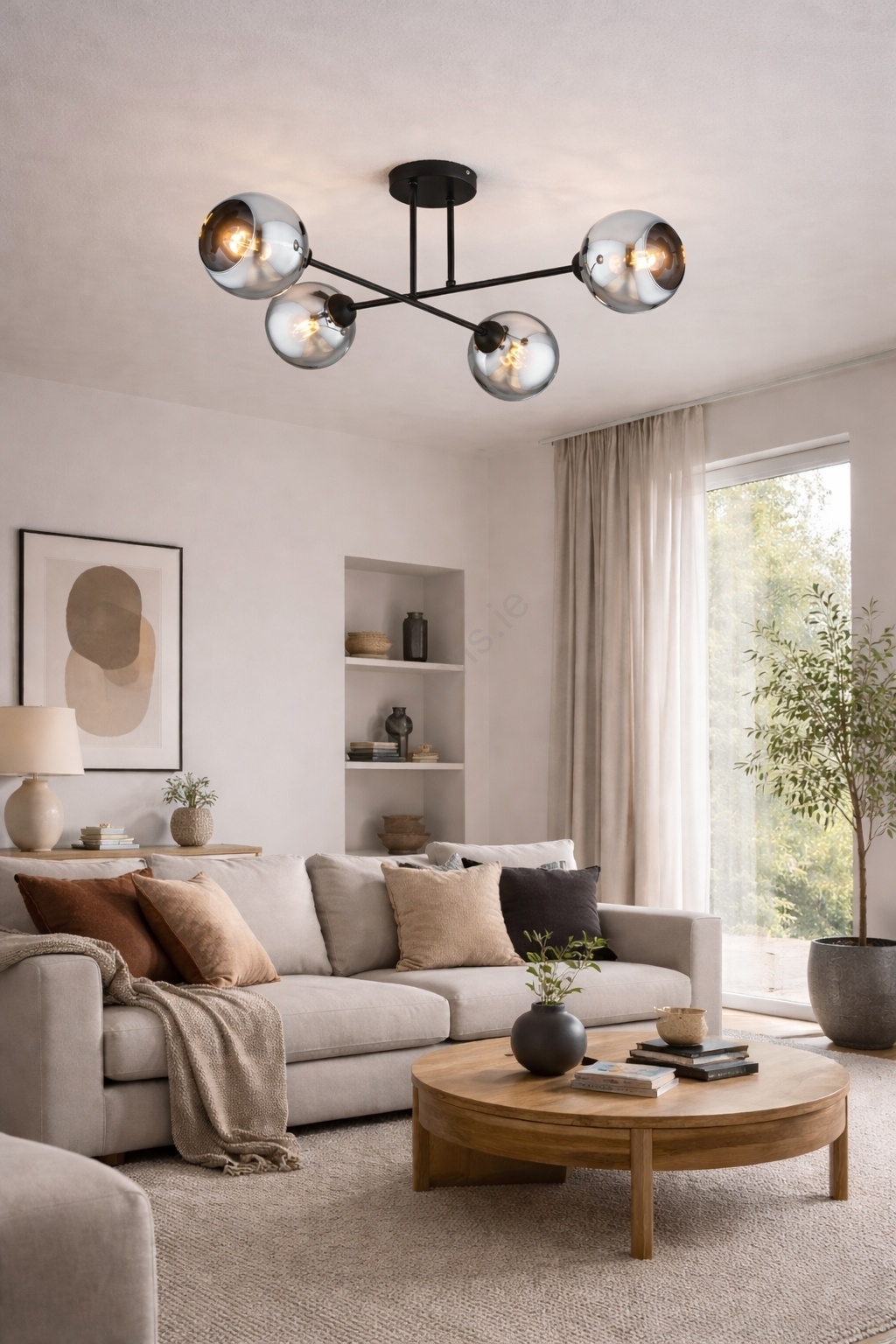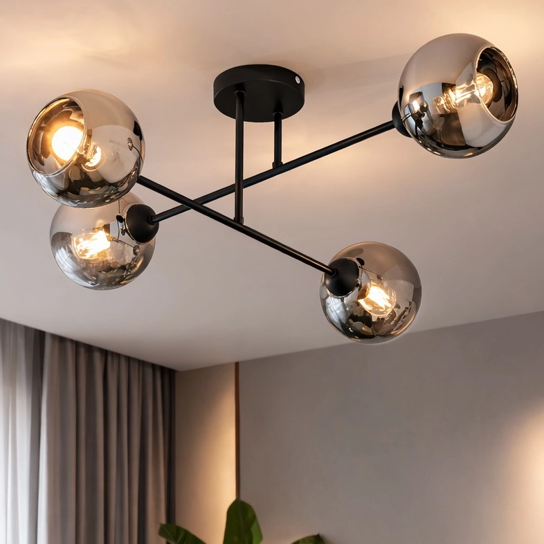 Brilagi - Flush-Mounted Chandelier 4xE27/60W/230V Black/Smoky Gray characterizes nice and functional design.  A bulb with E27 cap is suitable for the light. Here, you can buy other bulbs at advantageous prices. You will have an interesting addtiion to your home.