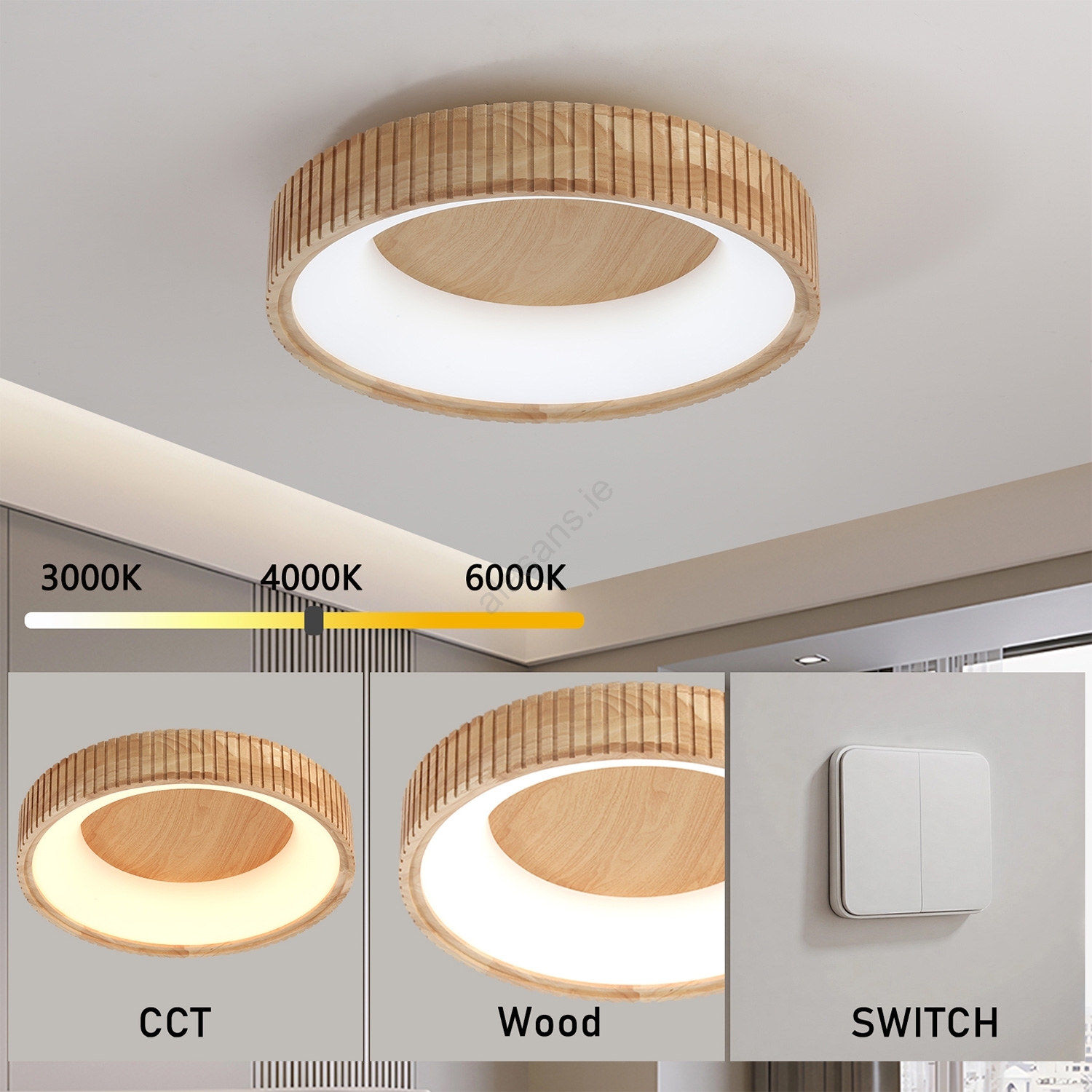 • Brilagi - FALCON WOOD LED Ceiling Light, 30W, 230V, 3000/4000/6000K, Ø45 cm, Wood