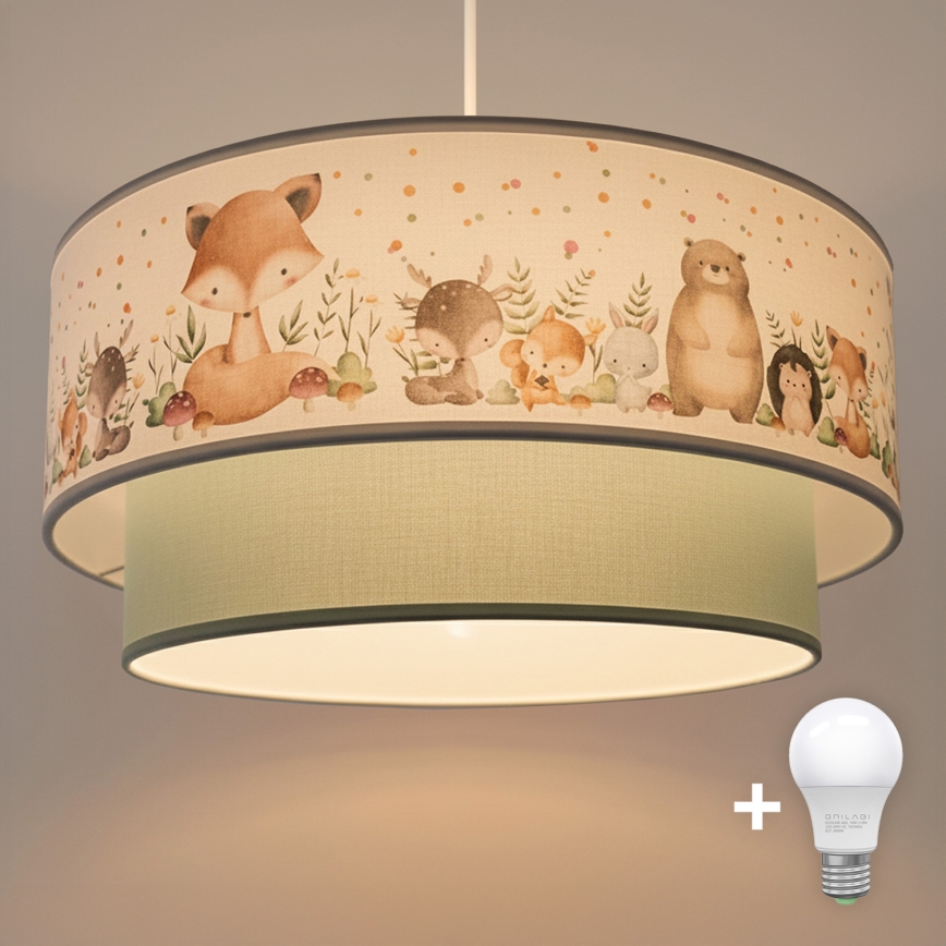 Brilagi - LED Kids' Pendant Lamp on Cable BOBO 1xE27/10W/230V Ø 40 cm white/green/animal motifs