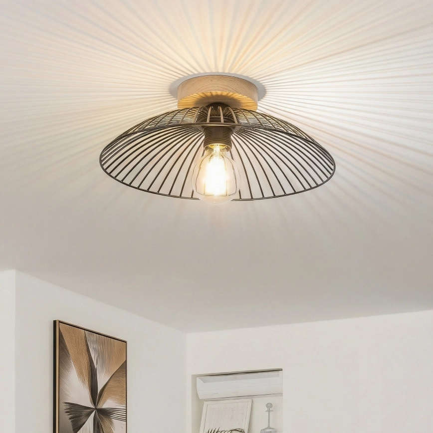Brilagi - LED Flush-Mount Chandelier CERIA WIRE 1xE27/40W/230V Ø 38 cm Black/Oak
