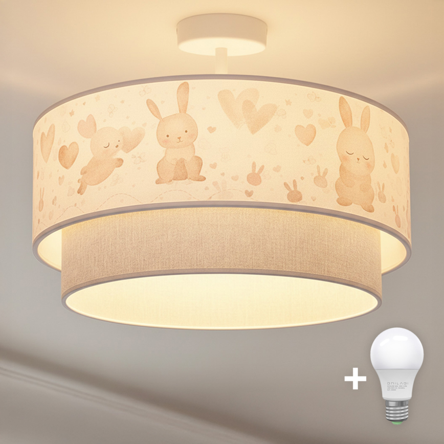 Brilagi - LED Children's Flush-Mount Ceiling Light BOBO 1xE27/10W/230V Ø 40 cm cream/gray/bunnies