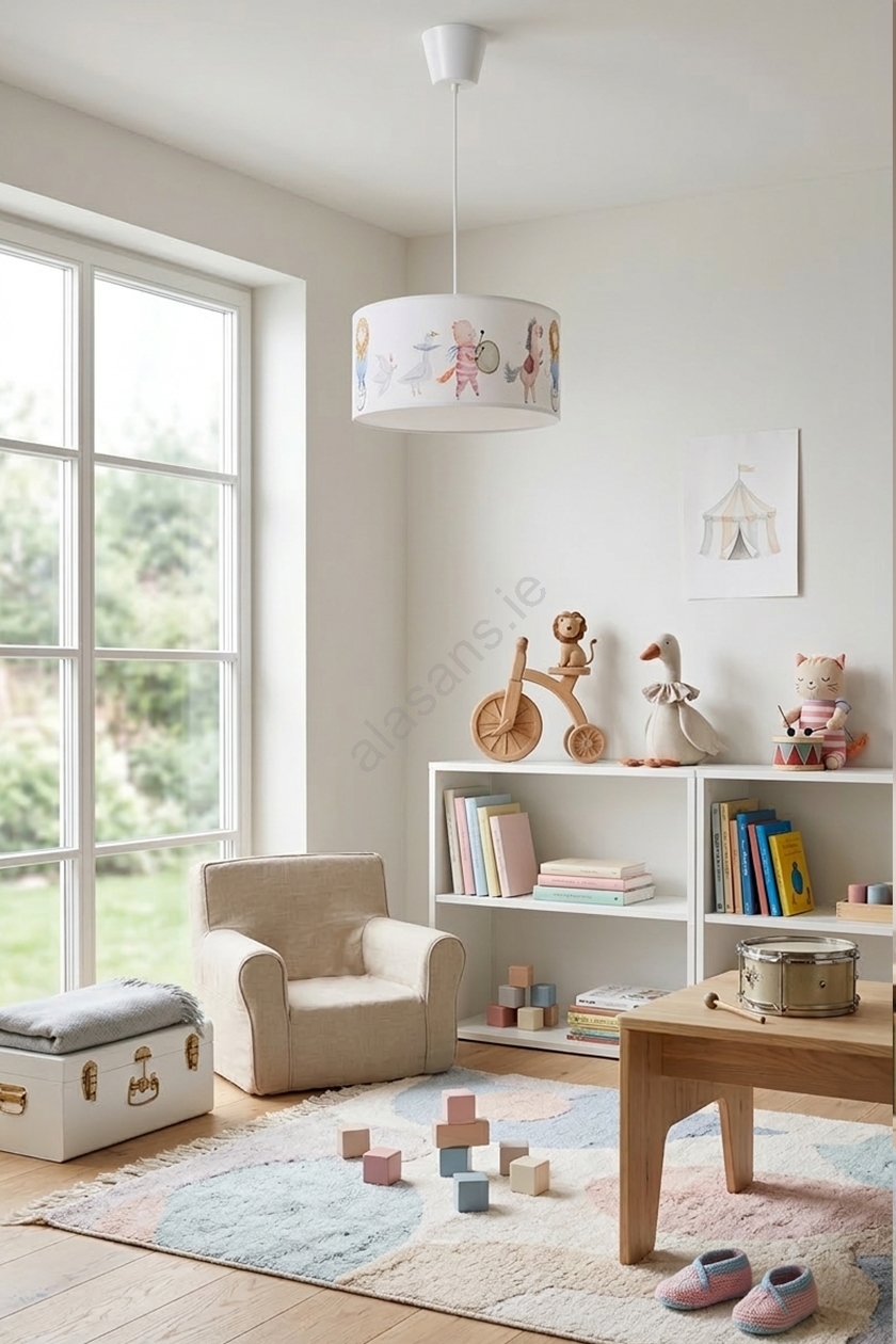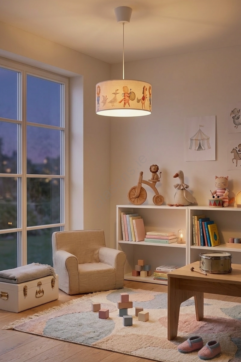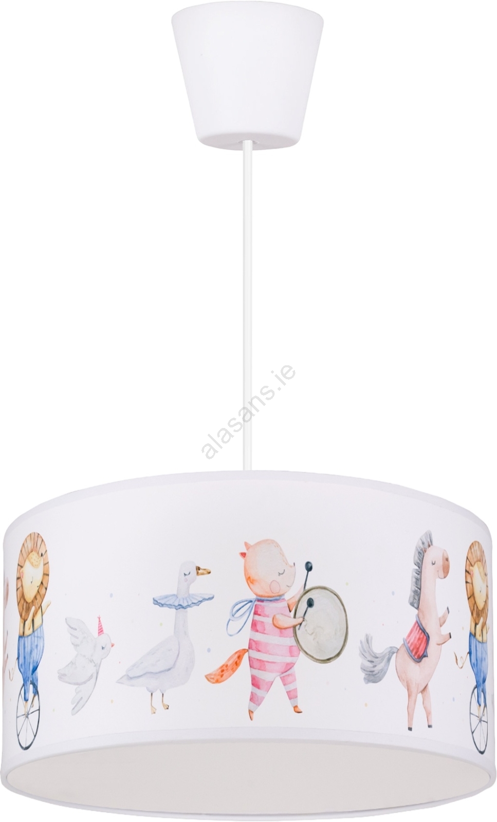 Brilagi - LED Kids' Pendant Light on Cable BOBO 1xE27/10W/230V dia. 35 cm white/animal motifs characterizes nice and functional design.  A bulb with E27 cap is suitable for the light. Here, you can buy other bulbs at advantageous prices. You will have an interesting addtiion to your home.