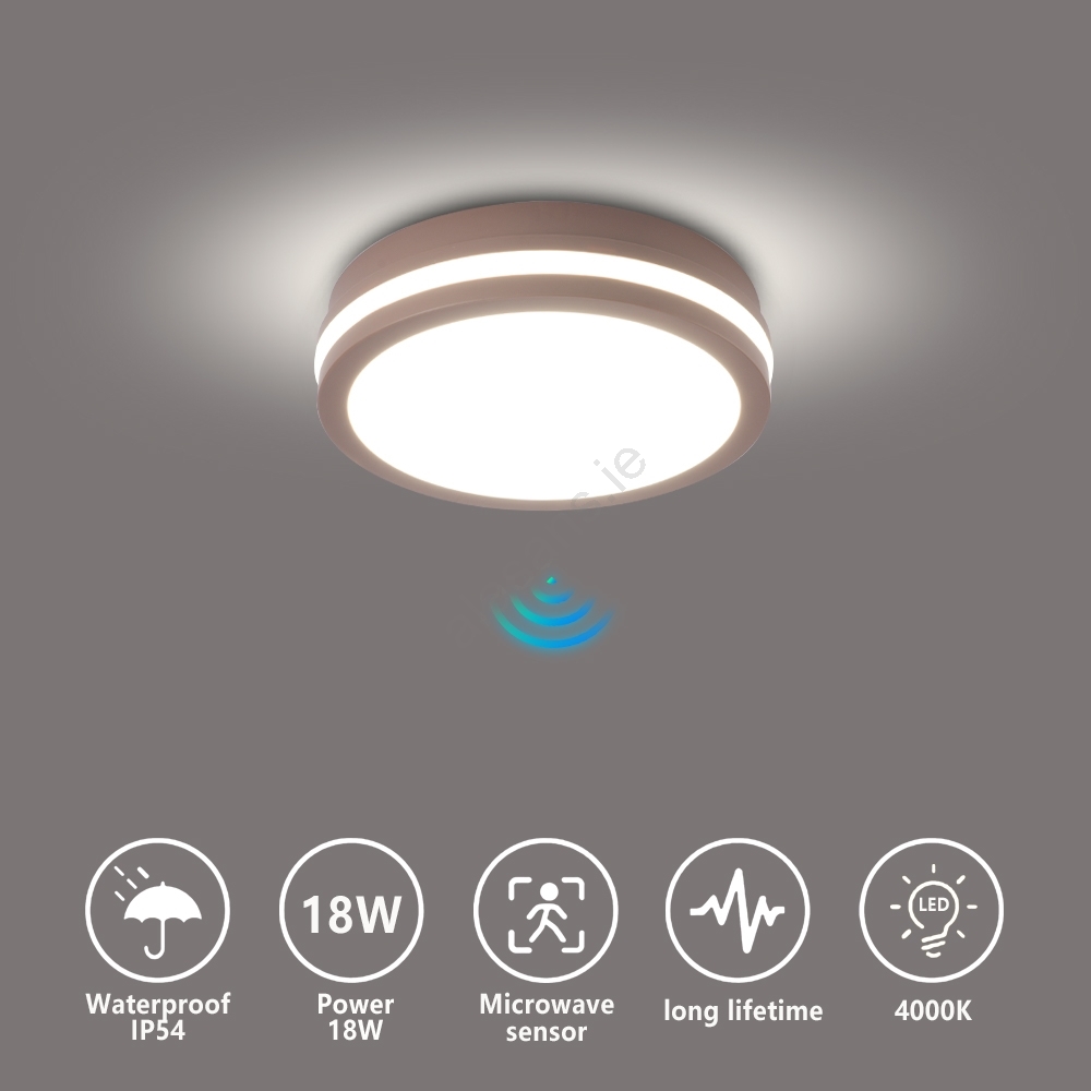 • Brilagi - LED outdoor ceiling light with sensor BENE LED/18W/230V, Ø 21.5 cm, white, IP54