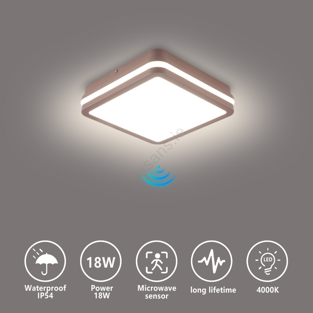 Brilagi - BENE LED Outdoor Ceiling Light with Sensor, LED/18W/230V, 21.5x21.5 cm, Brown, IP54