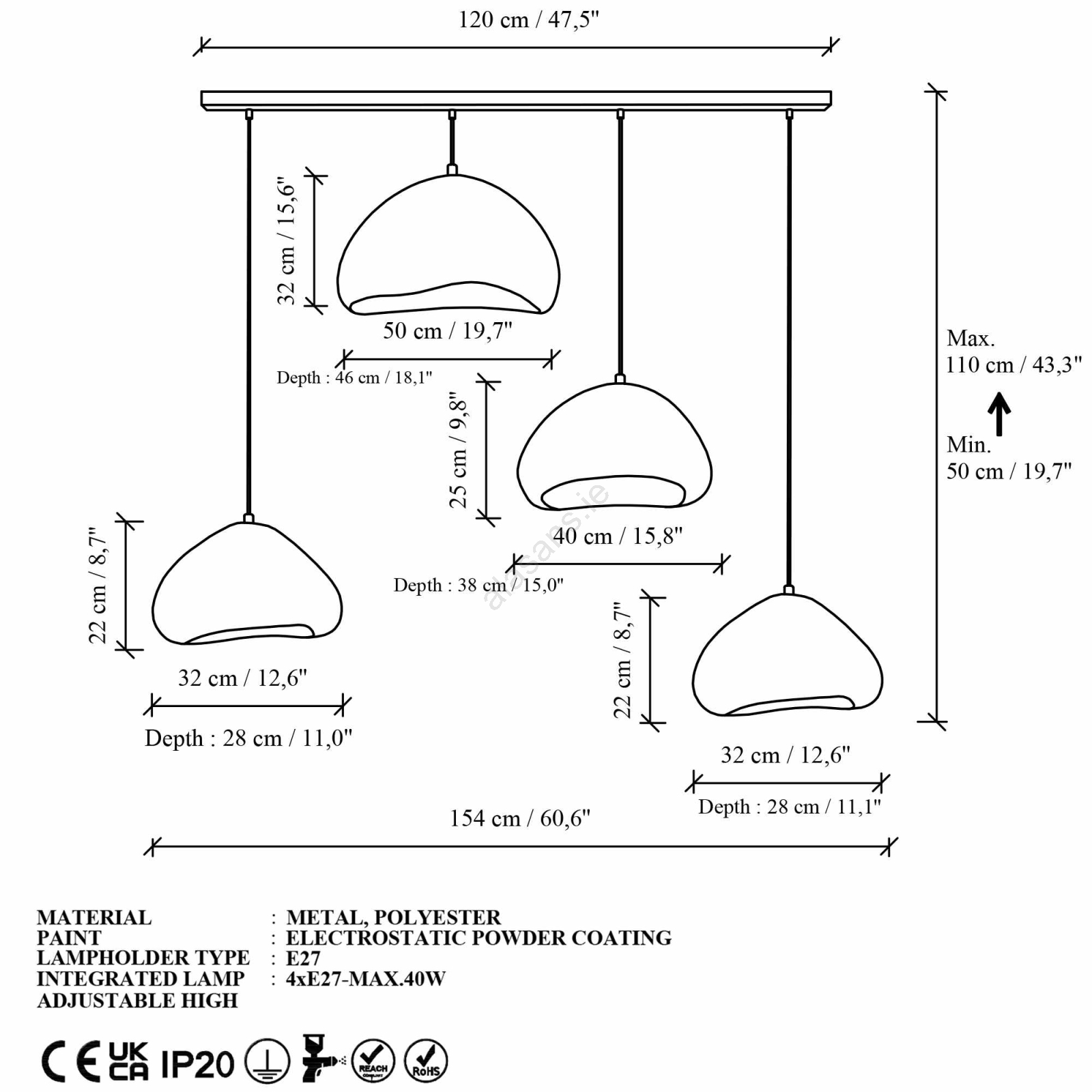 Brilagi - WABI SABI Cable Pendant Light 4xE27/40W/230V, White