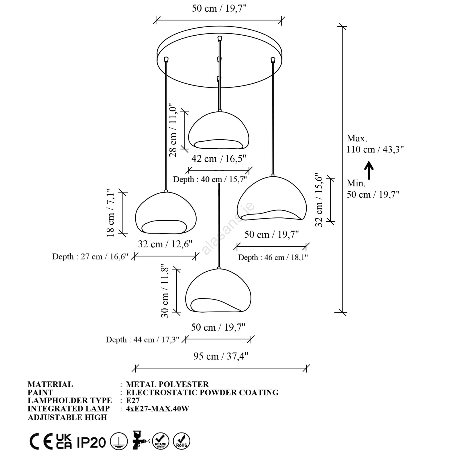 Brilagi - WABI SABI cable pendant light 4xE27/40W/230V Ø 95 cm white