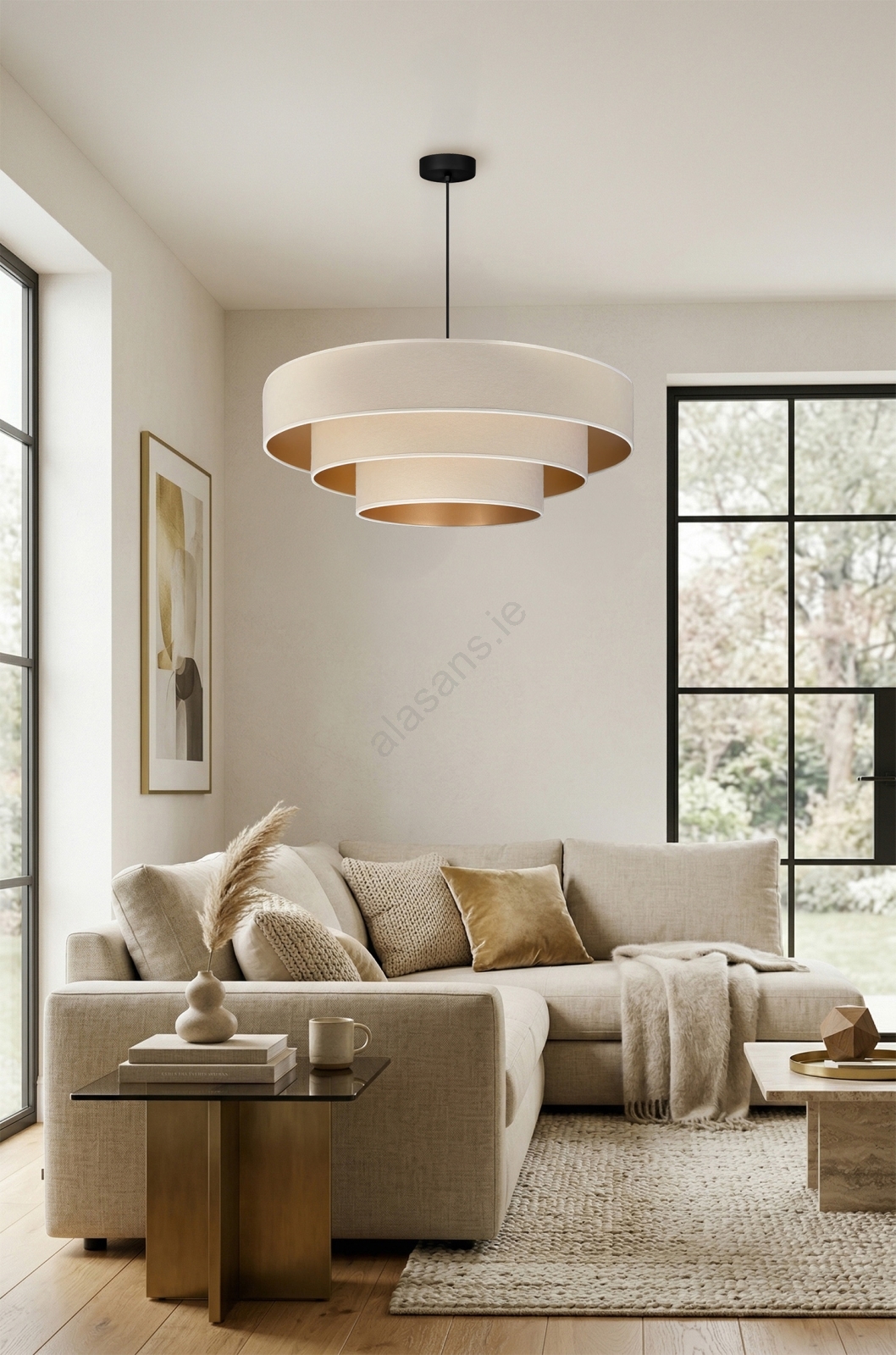 • Brilagi - LUNETA cable-hung pendant lamp 3xE27/60W/230V, Ø 80 cm, cream/gold