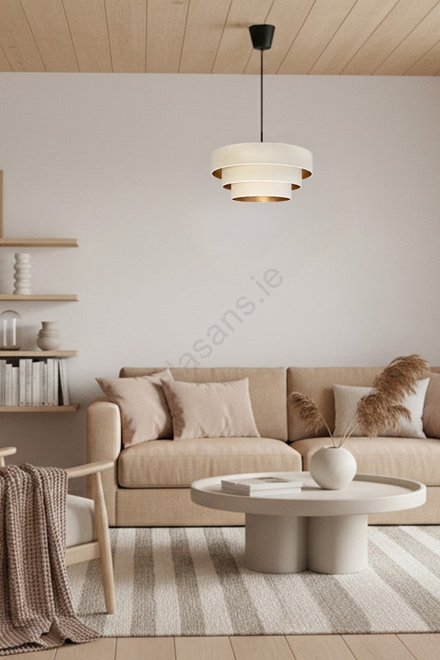 Brilagi - LUNETA Cable Pendant Light 1xE27/60W/230V Ø 40 cm Cream/Gold characterizes nice and functional design.  A bulb with E27 cap is suitable for the light. Here, you can buy other bulbs at advantageous prices. You will have an interesting addtiion to your home.