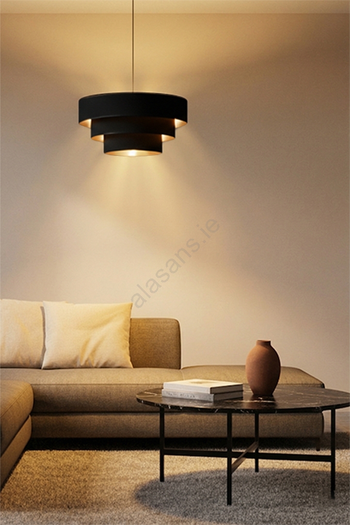 Brilagi - LUNETA cable-suspended pendant light 1xE27/60W/230V Ø 40 cm black/gold characterizes nice and functional design.  A bulb with E27 cap is suitable for the light. Here, you can buy other bulbs at advantageous prices. You will have an interesting addtiion to your home.