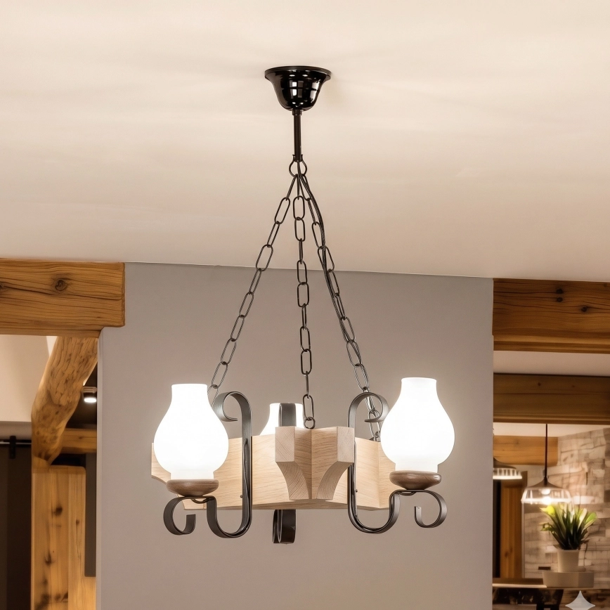 Brilagi - QUEEN Chain-Hung Chandelier 3xE14/40W/230V, Oak characterizes nice and functional design.  A bulb with E14 cap is suitable for the light. Here, you can buy other bulbs at advantageous prices. You will have an interesting addtiion to your home.