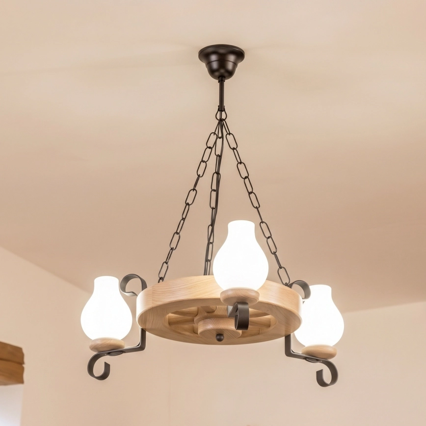 Brilagi - ROATA Chain-Hung Chandelier 3xE14/40W/230V Oak characterizes nice and functional design.  A bulb with E14 cap is suitable for the light. Here, you can buy other bulbs at advantageous prices. You will have an interesting addtiion to your home.