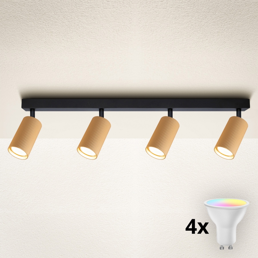 • Brilagi - LED RGBW Dimmable Spotlight SELE 4xGU10/4,8W/230V 3000K Black/Gold + Remote Control
