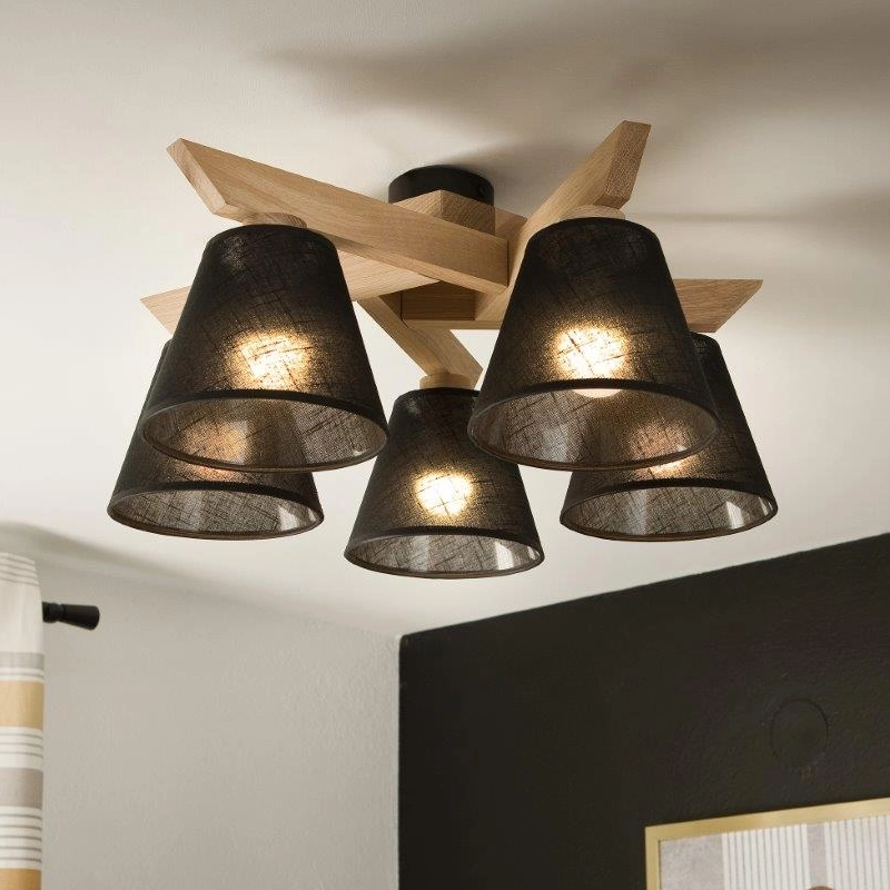 Brilagi - LED Surface-mounted chandelier ANTHONY 5xE14/40W/230V oak/black characterizes nice and functional design. A bulb with E14 cap is suitable for the light. Here, you can buy other bulbs at advantageous prices. You will have an interesting addtiion to your home. Select the goods and put them into the shopping cart, the bulb will be added automatically. The used natural materials will give each product a distinctive look. The characteristic wooden features with knots and structure are a guarantee of the uniqueness of each product so it may not fully match the image. Therefore, we would like to point out that it is not covered by the complaint because of the variety of the used natural material.