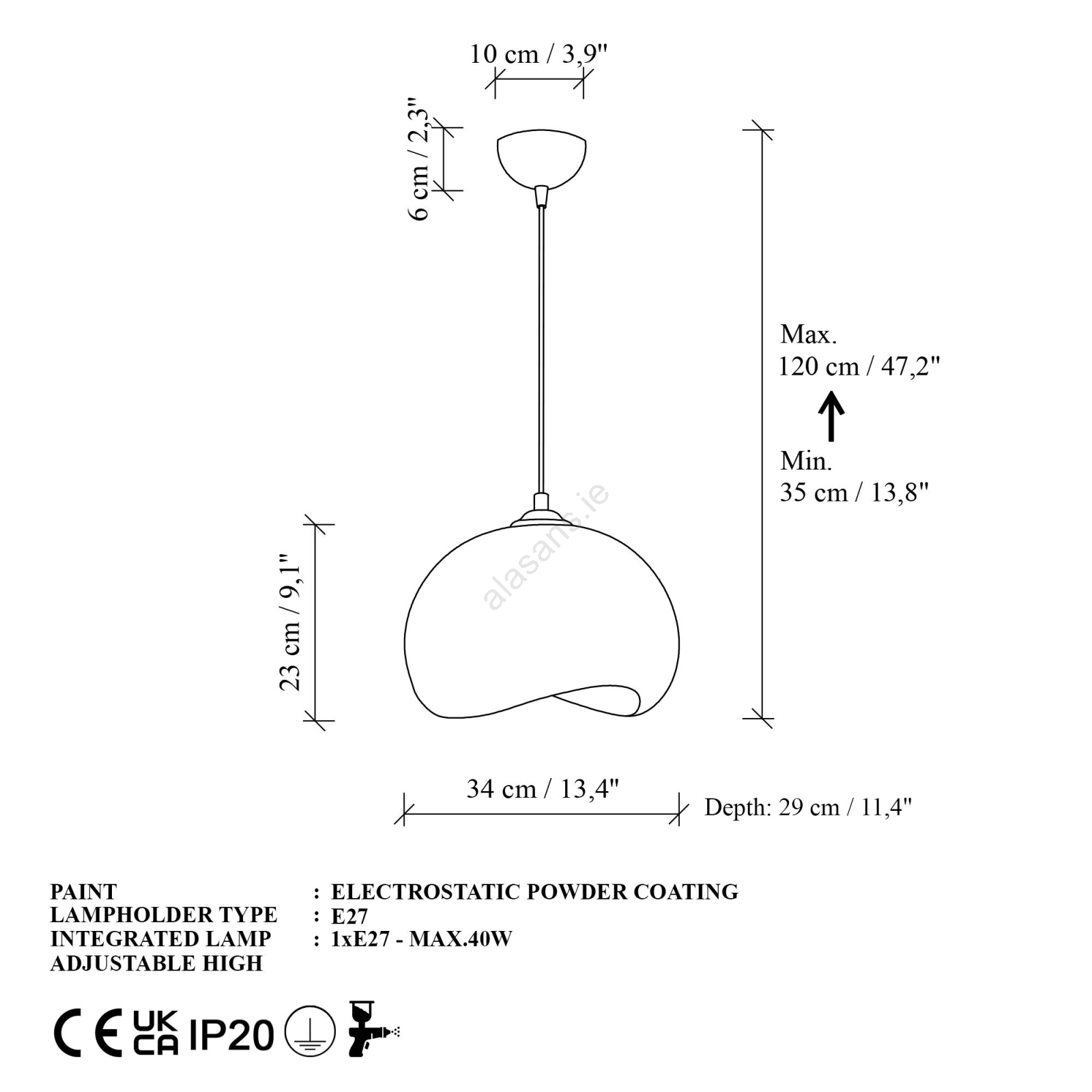 Brilagi - WABI SABI Cable Pendant Light 1xE27/40W/230V, Ø 34 cm, White