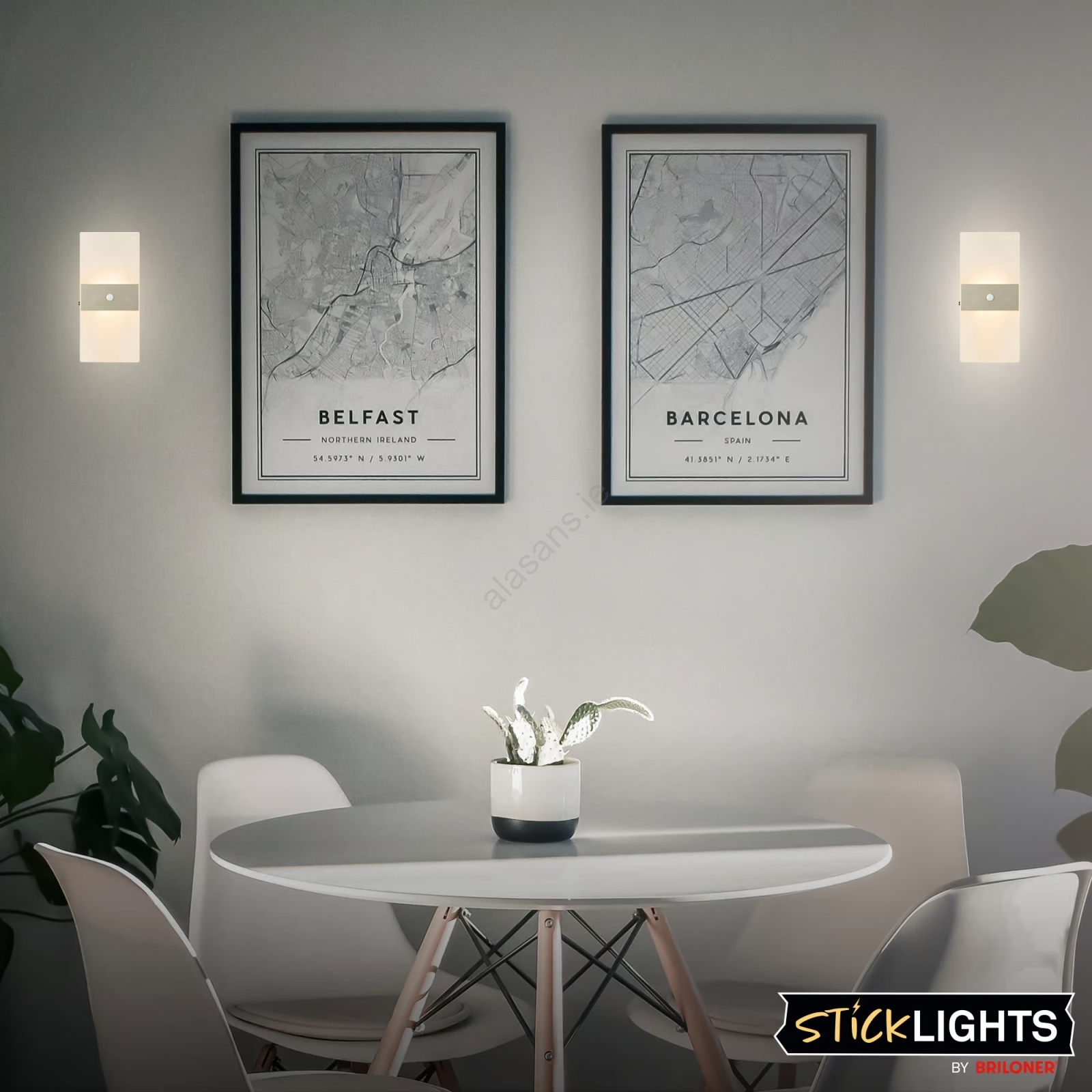 • Briloner 3888012 - AURA Rechargeable LED Wall Light with Motion and Dusk Sensor LED/2.5W/5V 1800 mAh Matte Chrome
