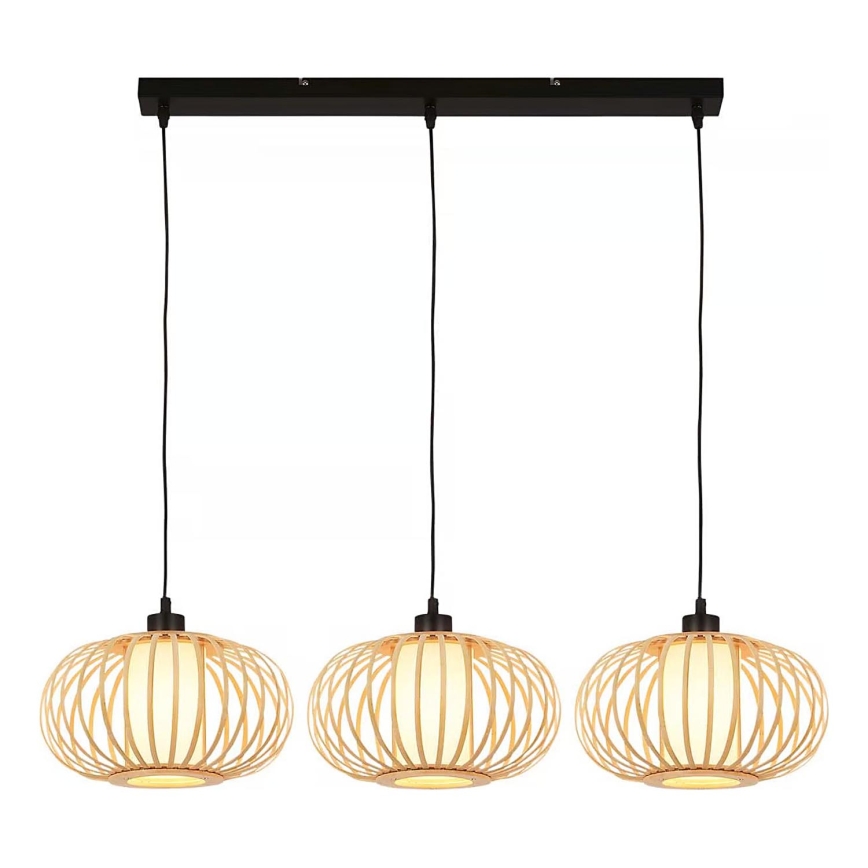 Briloner 4759031 - Cable-suspended pendant light 3x E27/10W/230V, black/bamboo