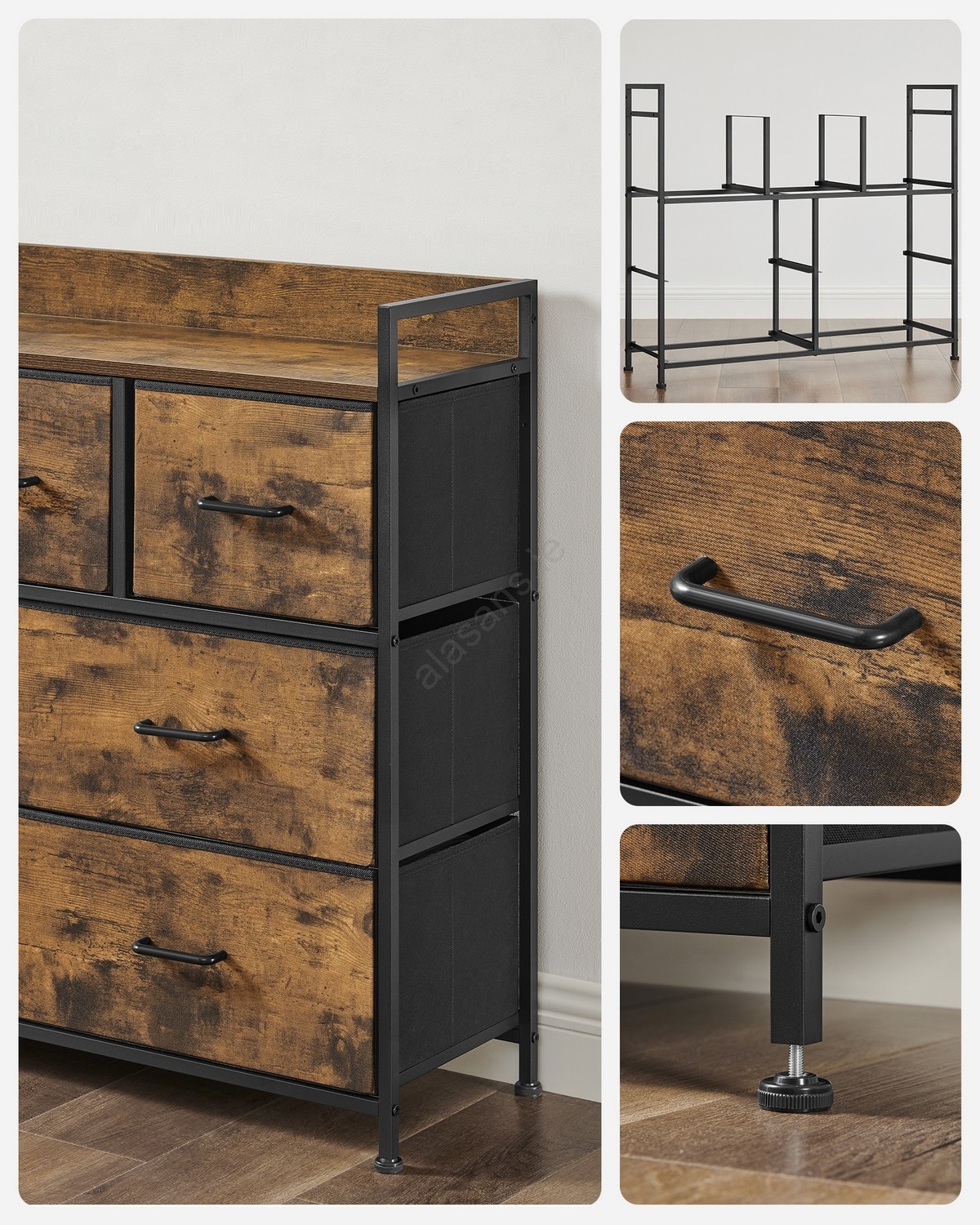 • 3 small and 4 large fabric drawers help you organize various small items and clothing.