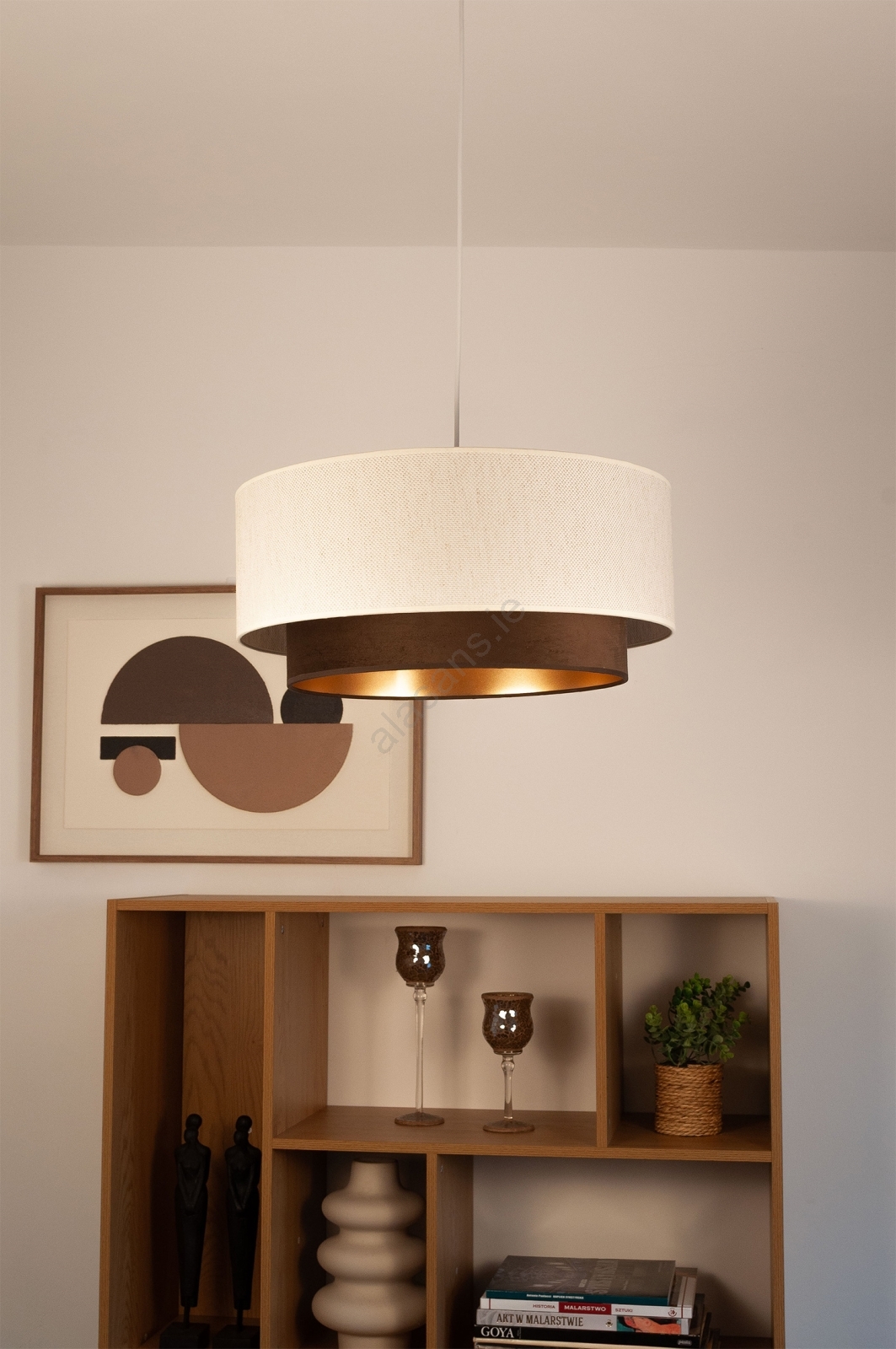 Cable pendant light NATIA 1xE27/60W/230V dia. 45 cm white/brown characterizes nice and functional design.  A bulb with E27 cap is suitable for the light. Here, you can buy other bulbs at advantageous prices. You will have an interesting addtiion to your home.