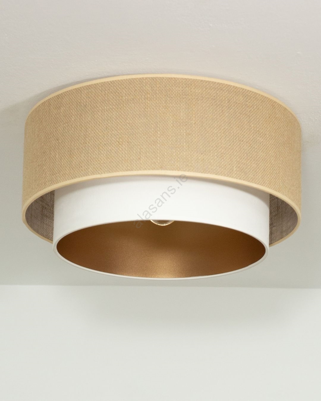 Ceiling light SARTA 1xE27/60W/230V, 45 cm diameter, white/jute characterizes nice and functional design.  A bulb with E27 cap is suitable for the light. Here, you can buy other bulbs at advantageous prices. You will have an interesting addtiion to your home.