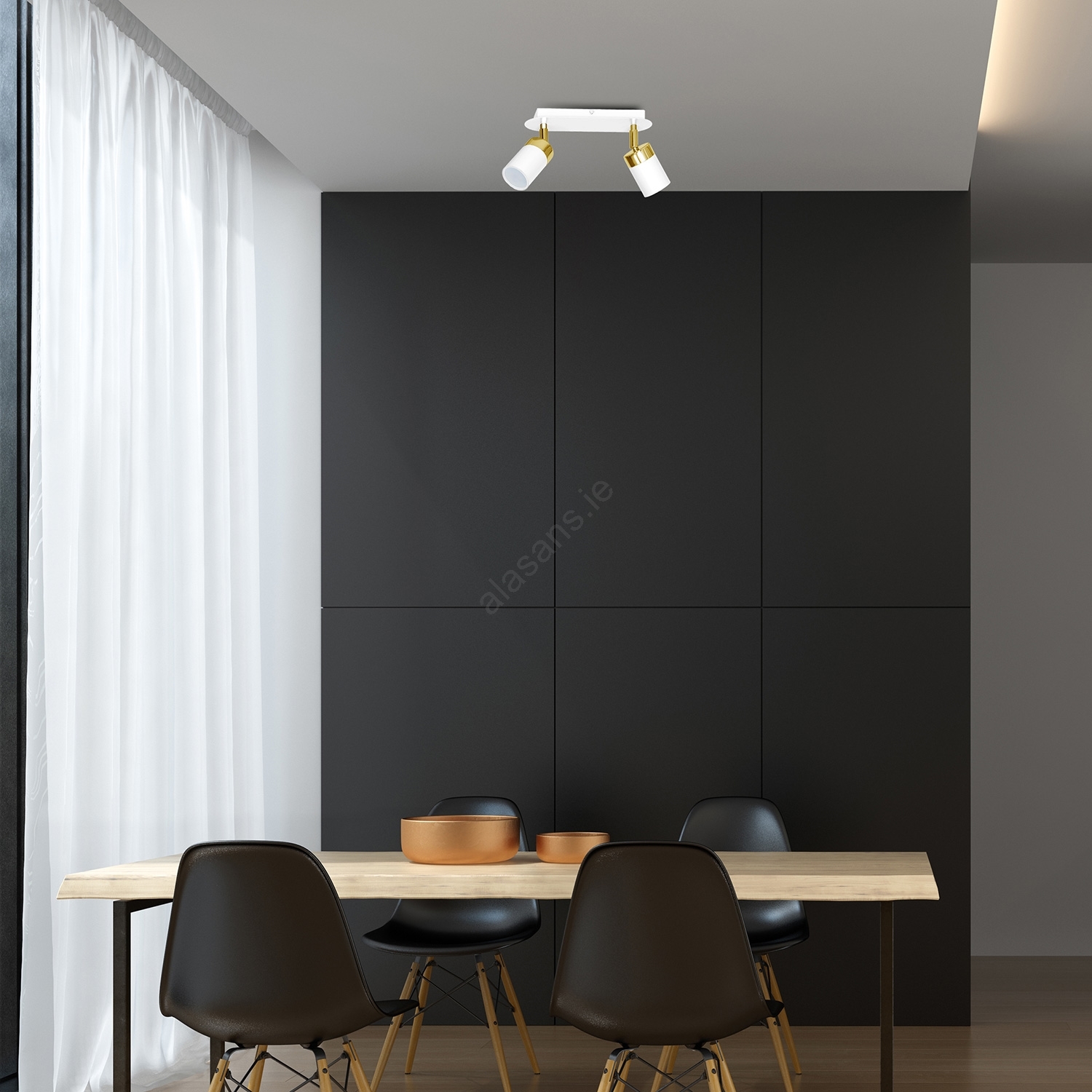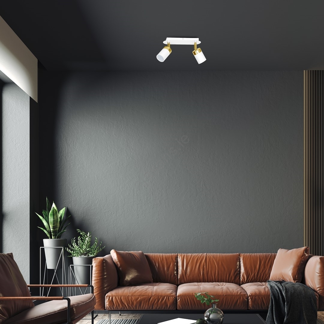 JOKER Spotlight 2xGU10/25W/230V White/Gold characterizes nice and functional design.  A bulb with GU10 cap is suitable for the light. Here, you can buy other bulbs at advantageous prices. You will have an interesting addtiion to your home.