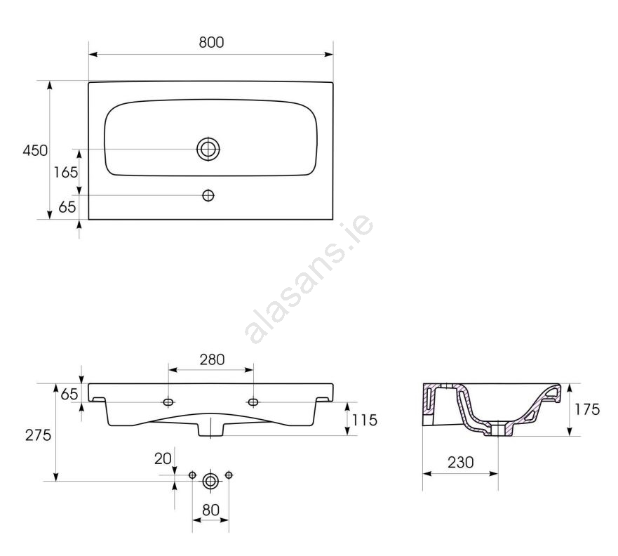 • The smooth, fully glazed surface makes the washbasin easy to keep clean.