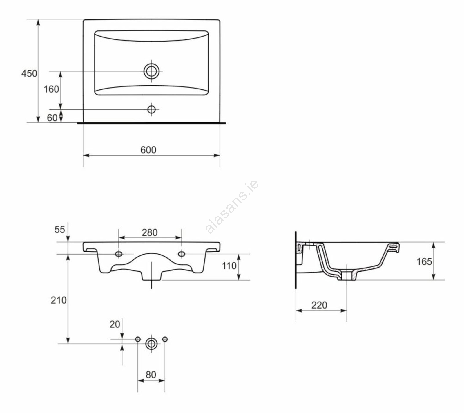 Cersanit K32-003-ECO - COMO 45x60 cm Countertop / Wall-hung Basin, Ceramic, Glossy White