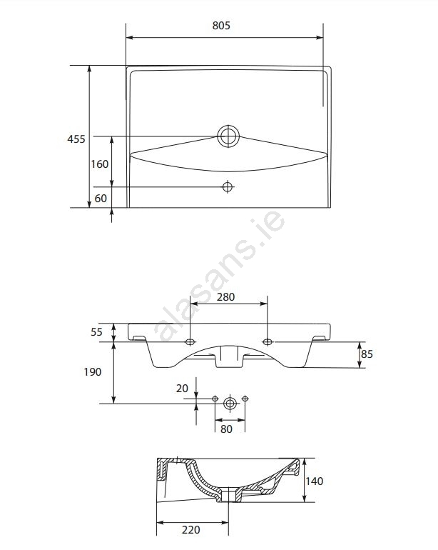 • Modern and elegant washbasin with overflow and a faucet hole.