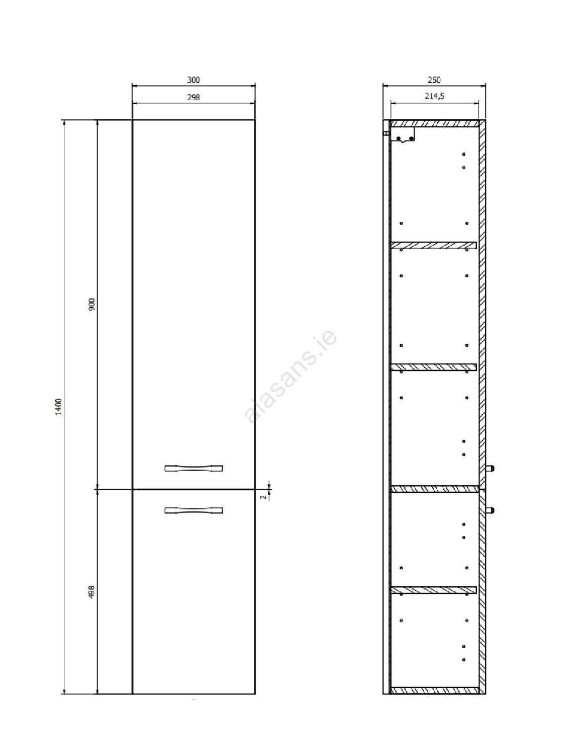 • The front, carcass and internal shelves are made of 16 mm particleboard.