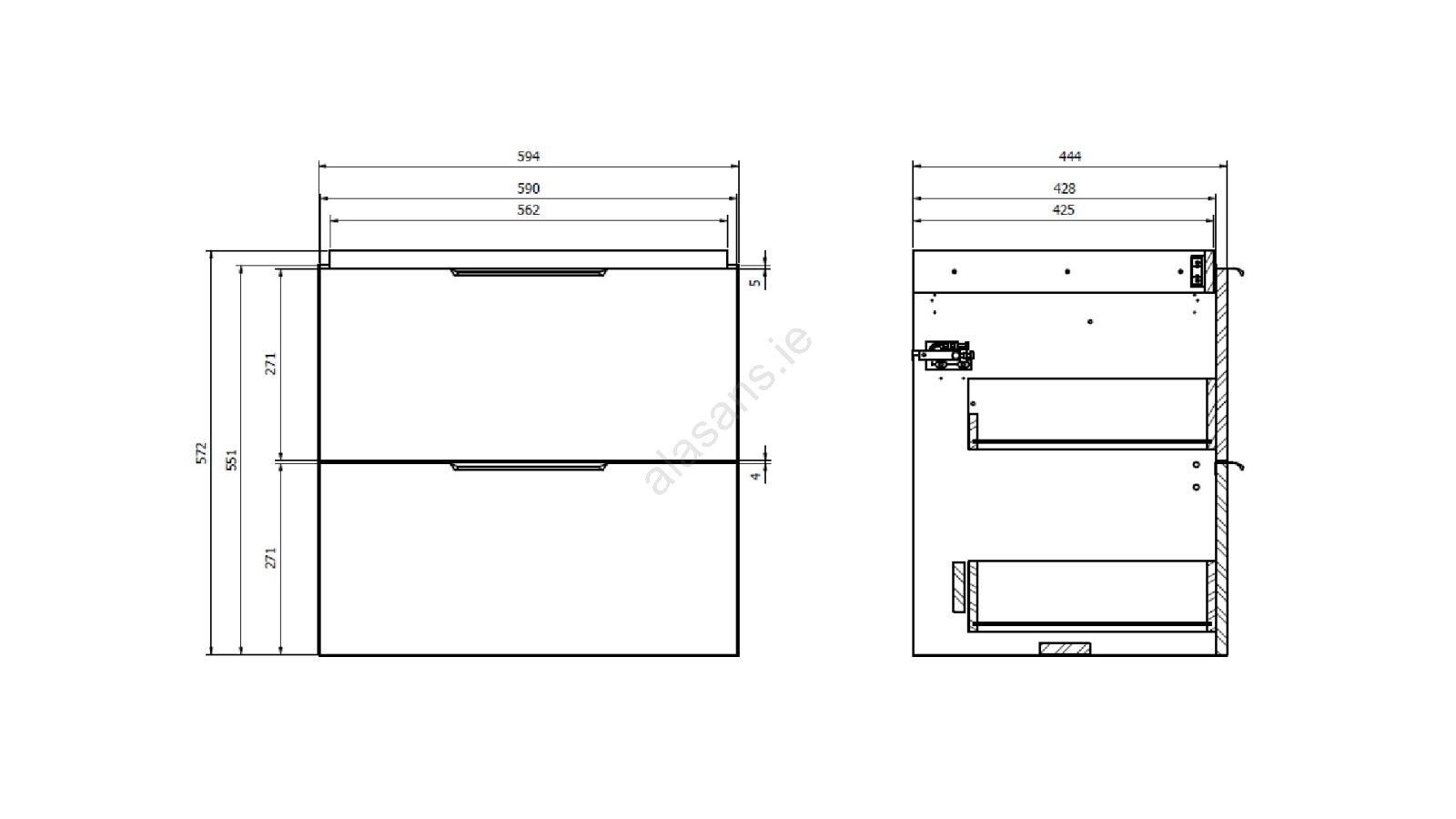 • The cabinet front and carcass are made from 16mm particleboard with a white lacquer finish.