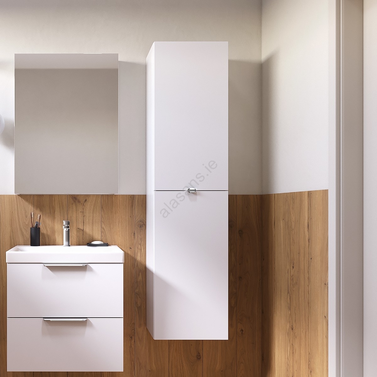 • Spacious wall-mounted tall cabinet.