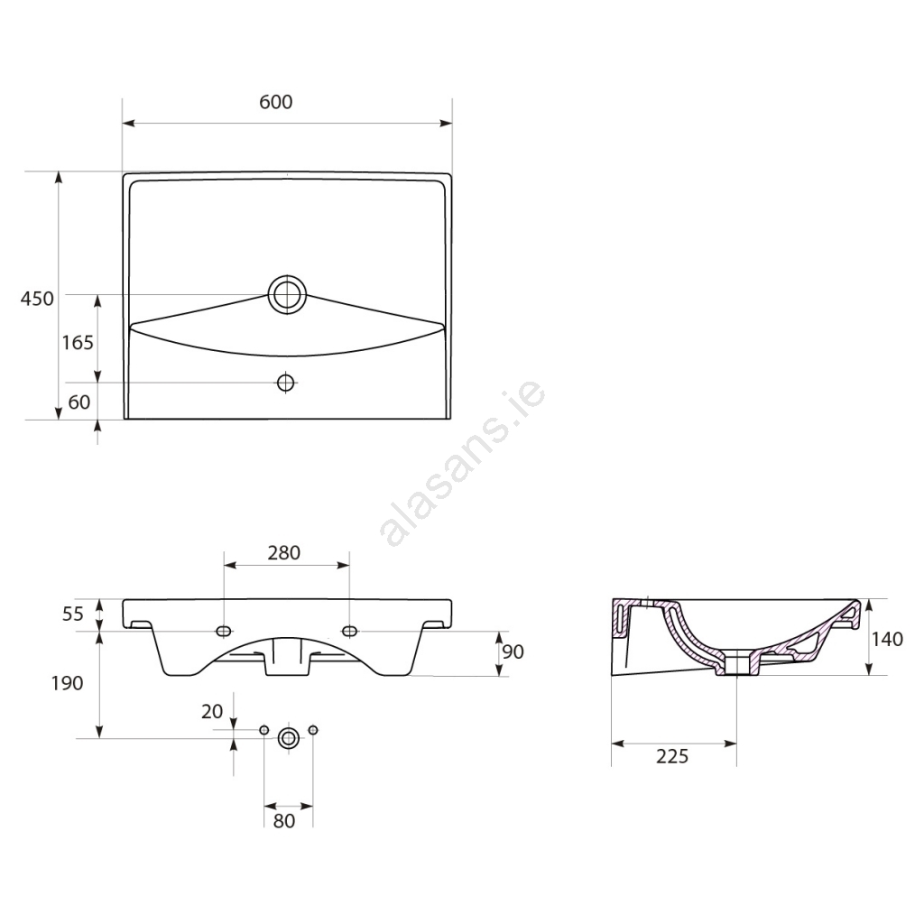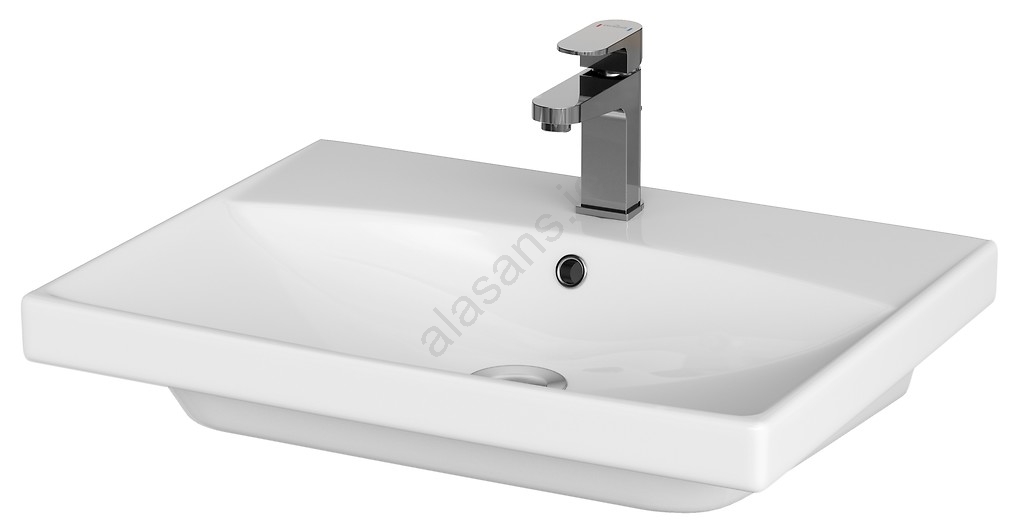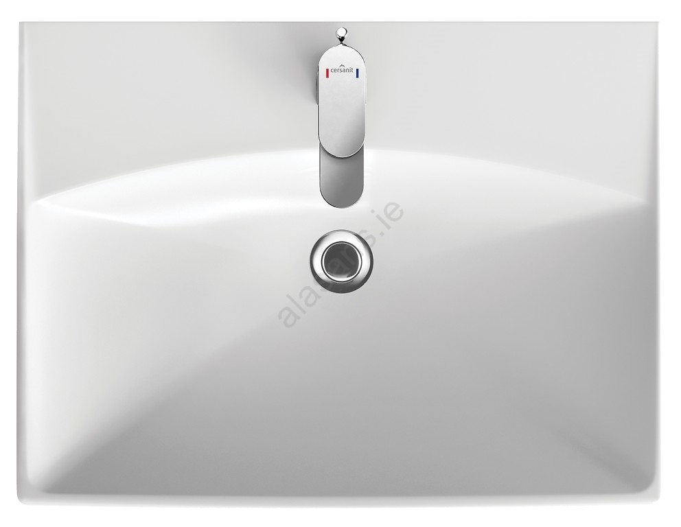 The ceramic basin has a classic rectangular shape with a tap hole and overflow.
