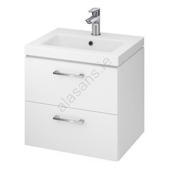 This hanging bathroom cabinet comes with a ceramic basin.