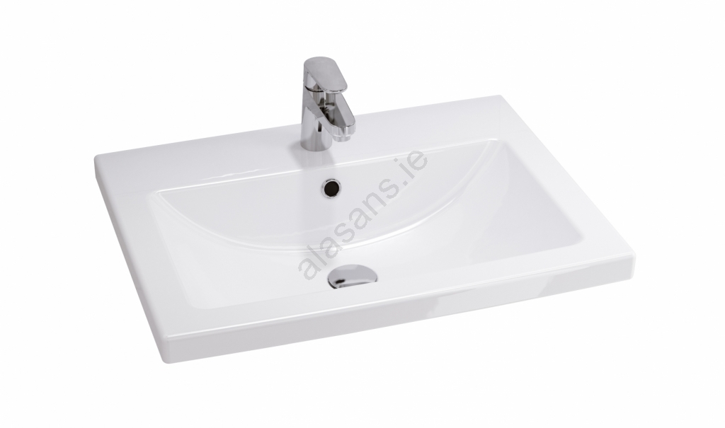 • The ceramic basin has a classic rectangular shape with a tap hole and overflow.