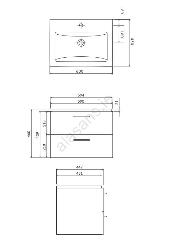 • The cabinet front and carcass are made from 16mm particleboard with a walnut finish.