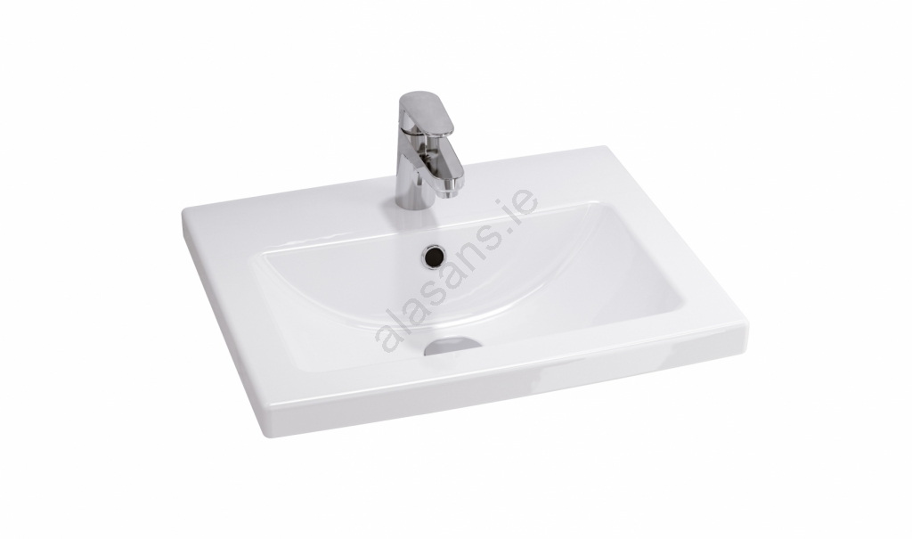 The ceramic basin has a classic rectangular shape with a tap hole and overflow.