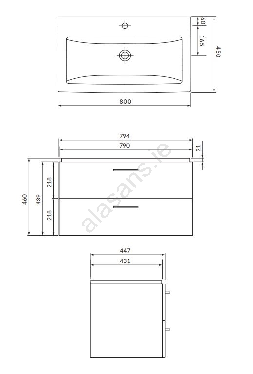 • Cersanit S801-149-DSM - LARA 80x45 cm Wall-Mounted Bathroom Vanity with Basin, White